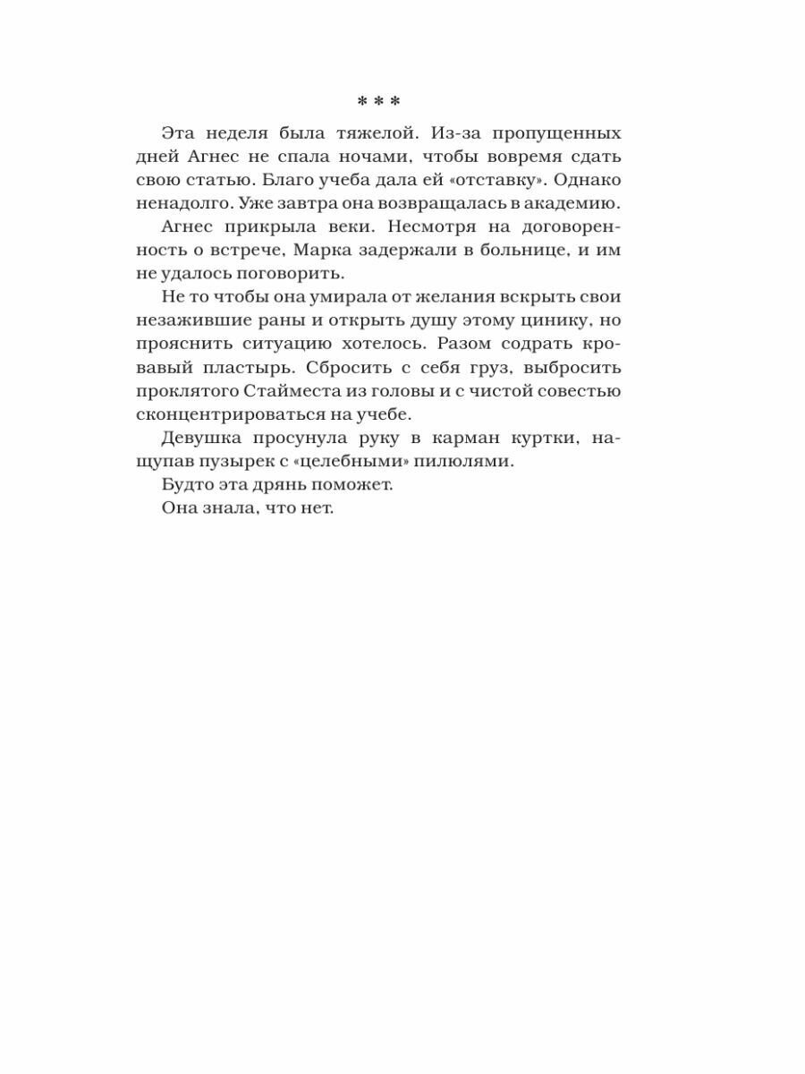 Я очень долго ждала выхода этой части, так как просто изнывала узнать, как же закончится история Агнес и Марка. Ну не могло все остаться плохо, я отказывалась в это верить. Не буду спойлерить тем, кто ещё не читал. Но с творчеством Милены Янг однозначно нужно познакомиться. Красивые истории, эмоциональные герои, и все это в совокупности не может оставить равнодушным!)