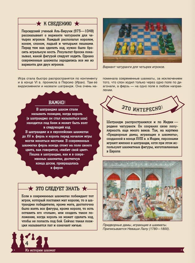 Шахматы - увлечение миллионов людей из самых разных стран мира. А еще это спорт, искусство и даже наука. Освоить азы популярнейшей настольной игры вам поможет данная книга. Терминология, важнейшие понятия и правила игры, самые выигрышные тактические приемы и комбинации и другая не менее полезная для каждого шахматиста информация - все это представлено на страницах данной энциклопедии. А советы от известных гроссмейстеров и проиллюстрированные примеры шахматных партий позволят вам, выстроив собственную стратегию игры, выходить победителем из самых сложных шахматных партий, просчитывая наперед ходы соперников и применяя секретные тактические приемы.