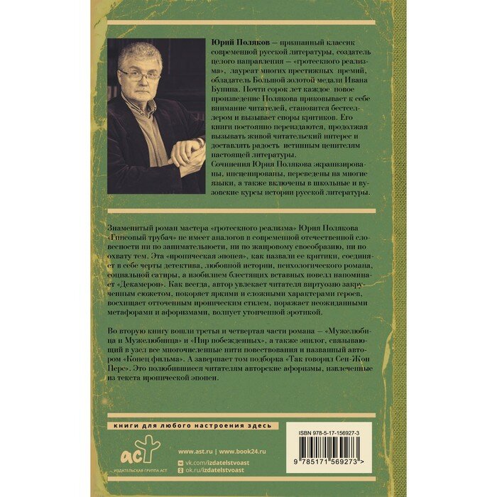 Во вторую книгу вошли третья и четвертая части романа - "Мужелюбица и Мужелюбница" и "Пир побежденных", а также эпилог, связывающий в узел все многочисленные нити повествования и названный автором "Конец фильма". А завершает том подборка "Так говорил Сен-Жон Перс". Это полюбившиеся читателям авторские афоризмы, извлеченные из текста иронической эпопеи.