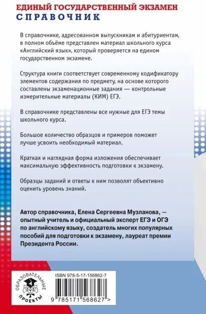 На сегодняшний день товар «Книга: ЕГЭ. Английский язык. Новый полный справочник для подготовки к ЕГЭ (Елена Музланова); АСТ, Образовательные проекты, 2023» можно купить с кешбеком в 4 магазинах: book24, Буквоед, Читай-город, Яндекс.Маркет