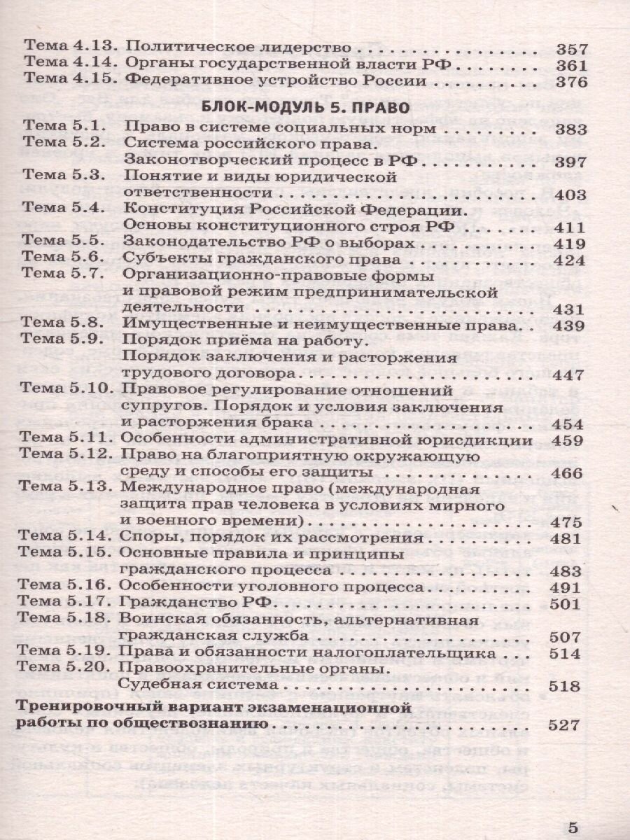 Пять блоков-модулей книги: «Человек и общество», «Экономика», «Социальные отношения», «Политика», «Право» включают теоретический материал, содержание которого представлено в лёгкой для запоминания форме в объёме, проверяемом на экзамене, и образцы заданий всех типов и уровней сложности, нацеленных на отработку умений быстрого и грамотного их решения.