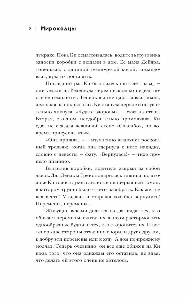 Книга о том как одна странная девочка (она слышит разговоры стен, вещей, разных предметов вокруг себя), переехав в другой город, встретила другую, очень загадочную и болезненную. У главной героини не было раньше друзей, а теперь она готова на многое ради их спасения. Сюжет очень динамичный, юной Ки придется отправится в волшебный мир ради спасения Хрустальной Принцессы. Книга понравится тем, кто любит путешествовать по магическим мирам и вместе с героями сражаться со Злом, спасая друзей. С первой же страницы читатель попадет в удивительный мир, созданный Дэйзи Ди: старинный особняк, стоящий на пересечении миров, картины, сквозь которые можно путешествовать между мирами, город-дерево, странные существа, Хрустальное сердце и удивительная кошка с зелеными глазами... Сможет ли Ки спасти своих друзей, чем ей придется пожертвовать ради них? Новое приключение в компании с мироходцами ждет тебя, читатель.