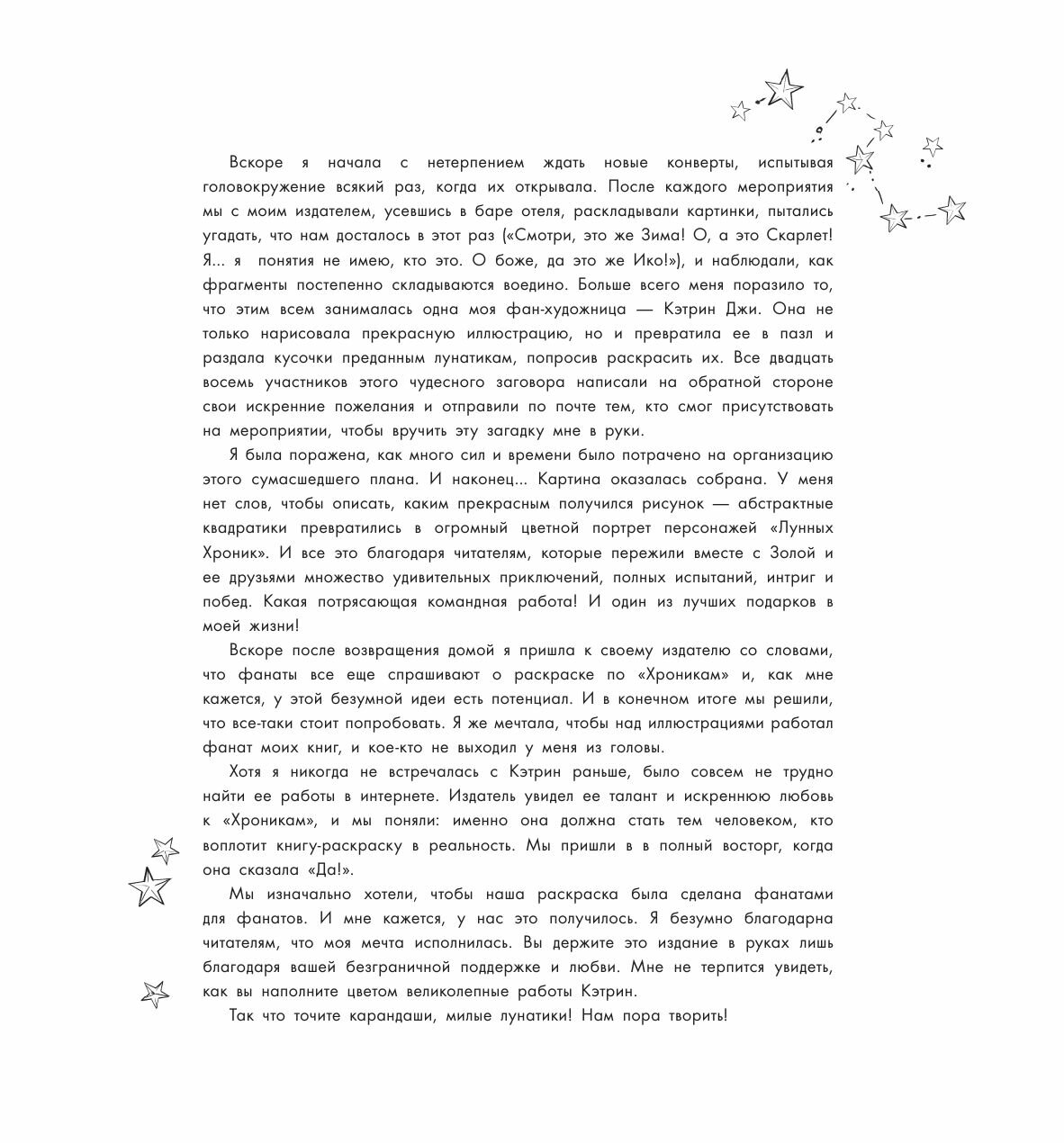 Неважно, являетесь ли вы бывалым лунатиком, или только начинаете свое путешествие в серию «Лунные хроники» — эта книга станет вашим путеводителем, источником вдохновения и незаменимым сувениром. Приключение начинается прямо здесь, в ваших руках!
