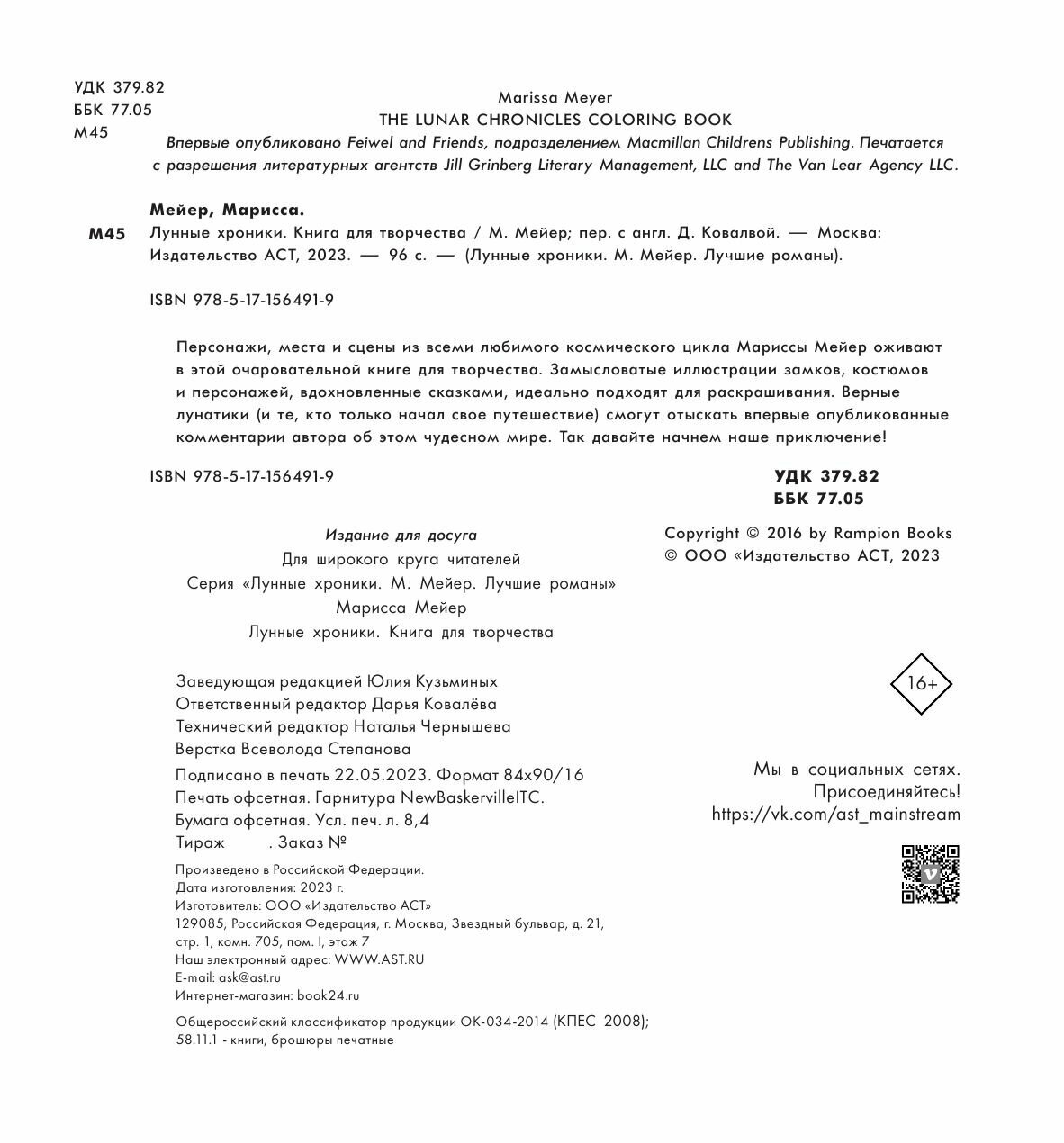 Лунные хроники. Книга для творчества (Мейер Марисса); ИЗДАТЕЛЬСТВО "АСТ", 2023