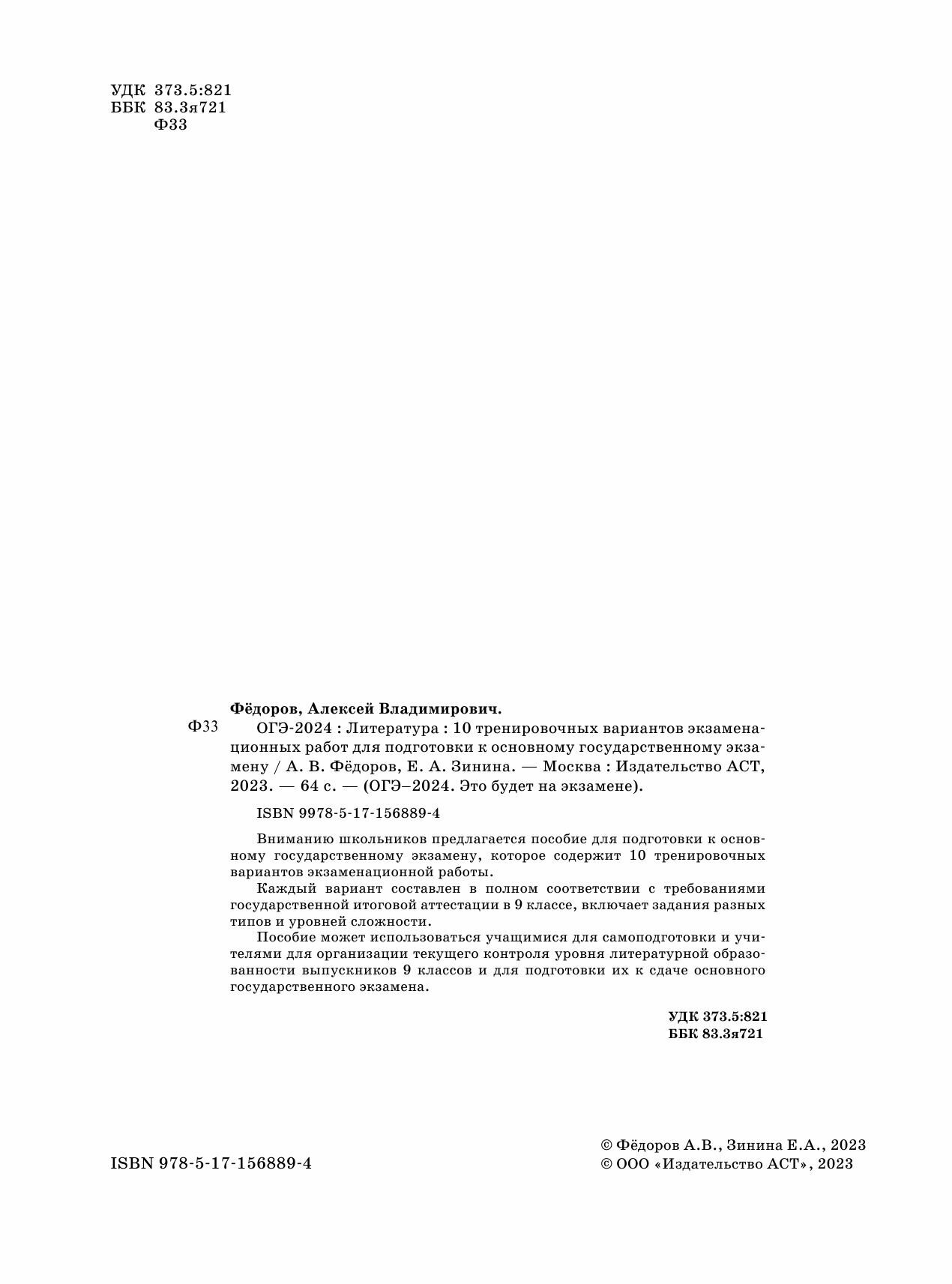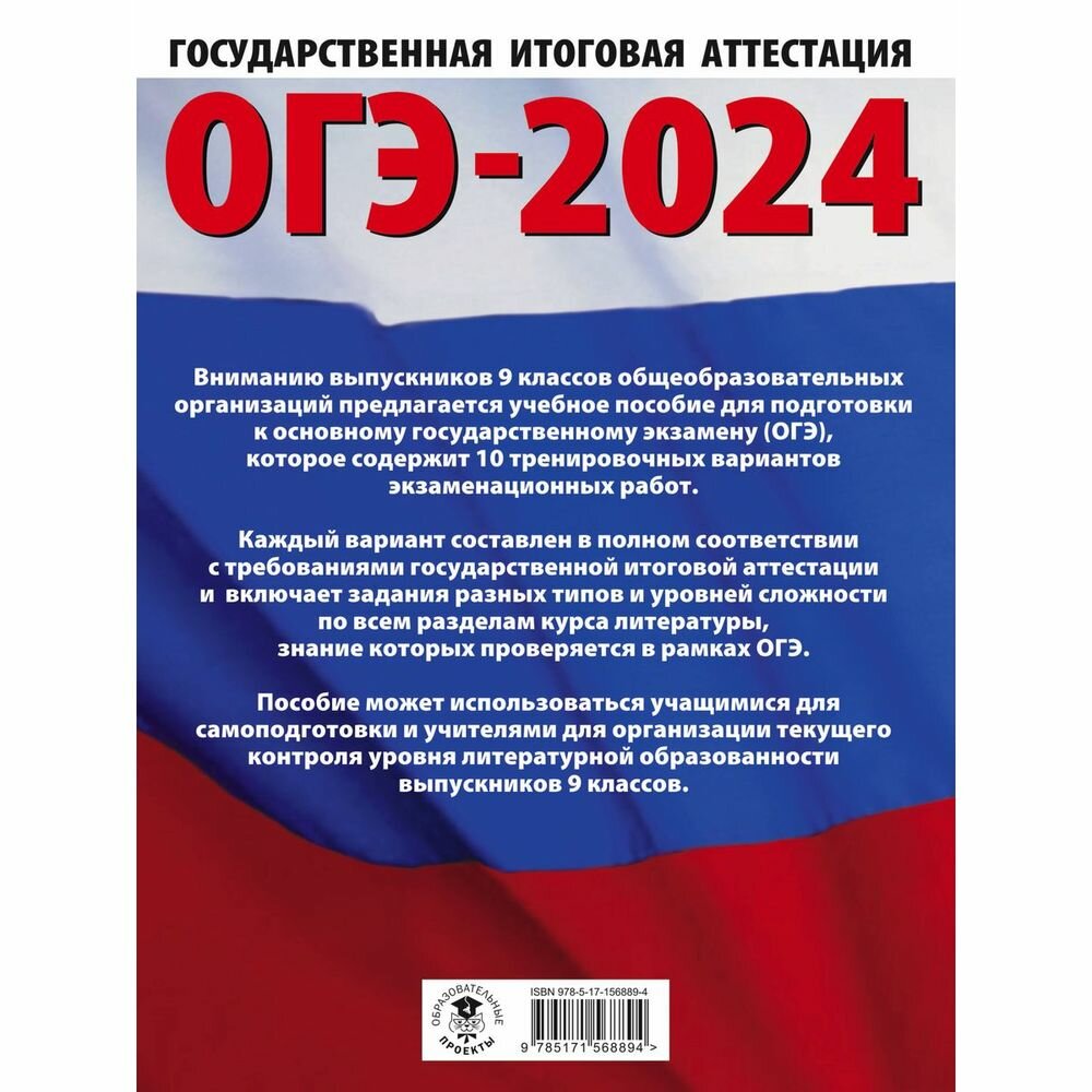 ОГЭ-2024. Литература (60x84/8).10 тренировочных вариантов экзаменационных работ для подготовки к основному государственному экзамену (Федоров Алексей Владимирович, Зинина Елена Андреевна); ИЗДАТЕЛЬСТВО "АСТ", 2023
