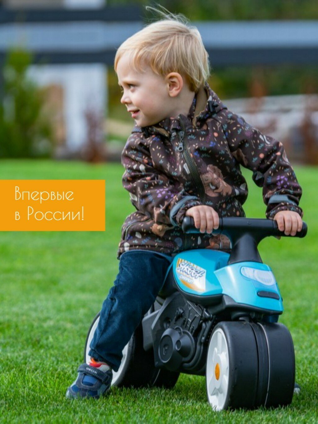Широкие колеса мотоцикла обеспечивают устойчивость, необходимую для безопасного развития чувства равновесия и общей моторики у ребенка.