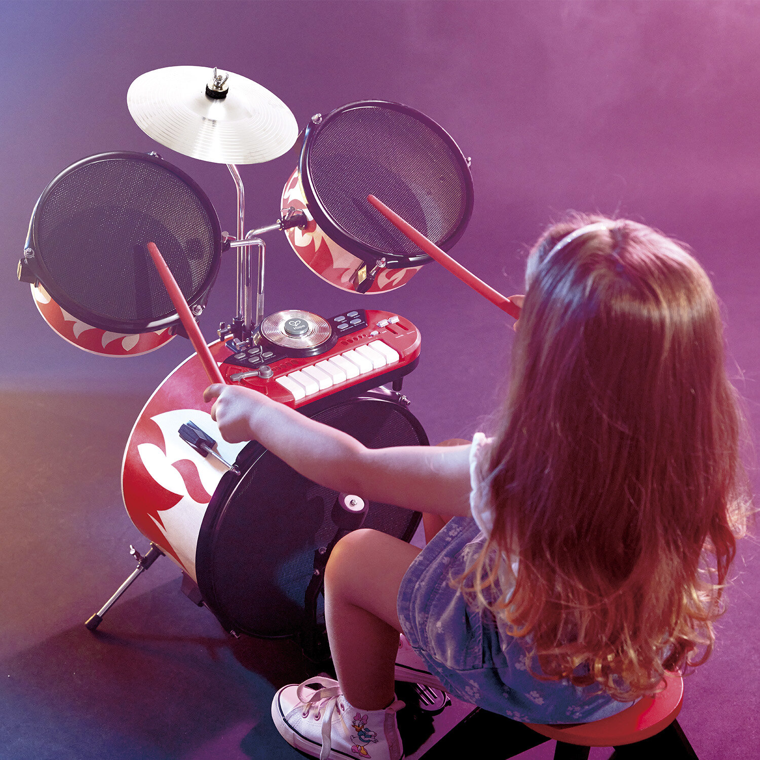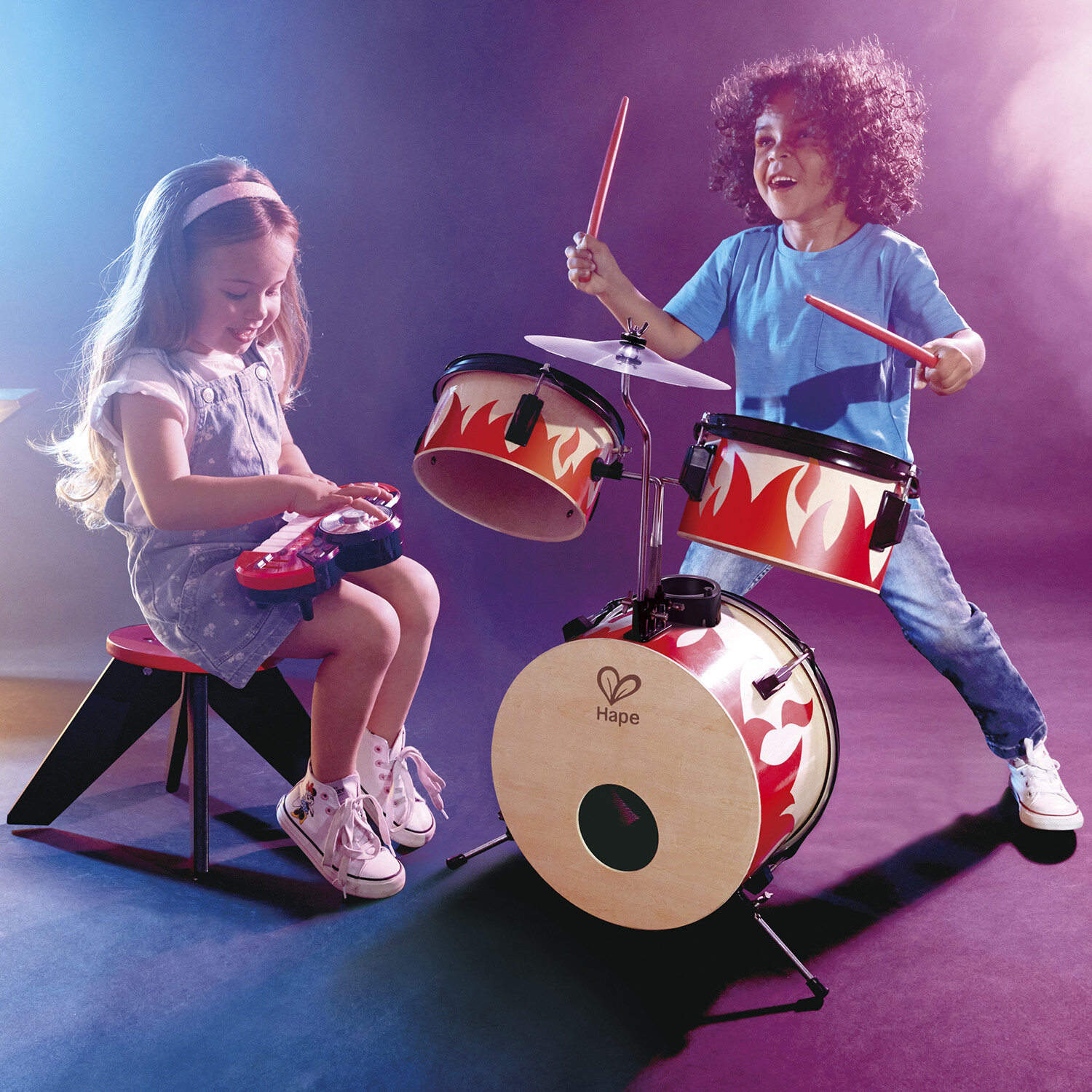 Музыкальный инструмент Hape Барабанная установка со стульчиком и пианино диджея