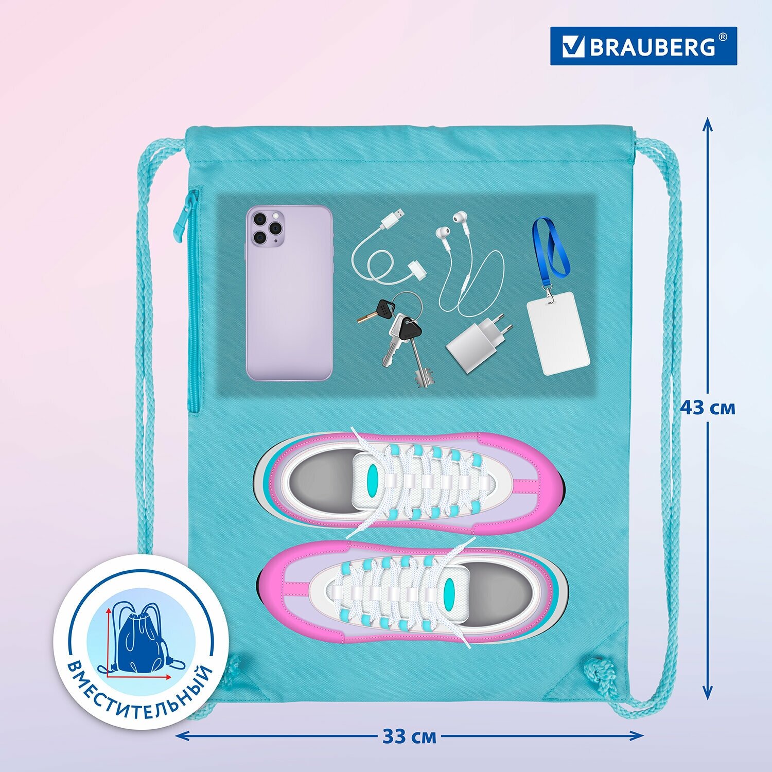 Brauberg - необходимый аксессуар в школе. Особенности: Подходит как для обуви, так и для физкультурной формы и сменной одежды для факультативных занятий. Затягивается двумя шнурками. Можно носить на плечах за спиной. Изготовлен из плотного полиэстера с водоотталкивающей пропиткой. Яркая и четкая печать дизайна на товаре достигнута за счет использования высококачественной ткани с высокой плотностью. Мешок размером 43х33 см имеет одно вместительное отделение с подкладкой и боковой карман на молнии для телефона, ключей и других мелочей. Наличие светоотражающих элементов в дизайне мешка повышает безопасность ребенка в темное время суток. Мешок для обуви упакован в плотный ПЭТ пакет, который сохранит качество и товарный вид при хранении и транспортировке.