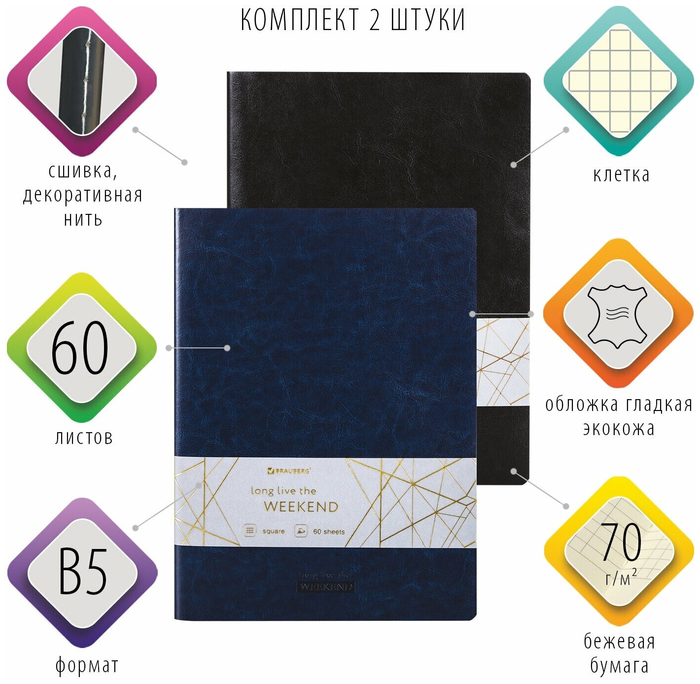 Тетрадь Brauberg Тетради Viva гладкий кожзам клетка B5 (60 листов) 2 шт.