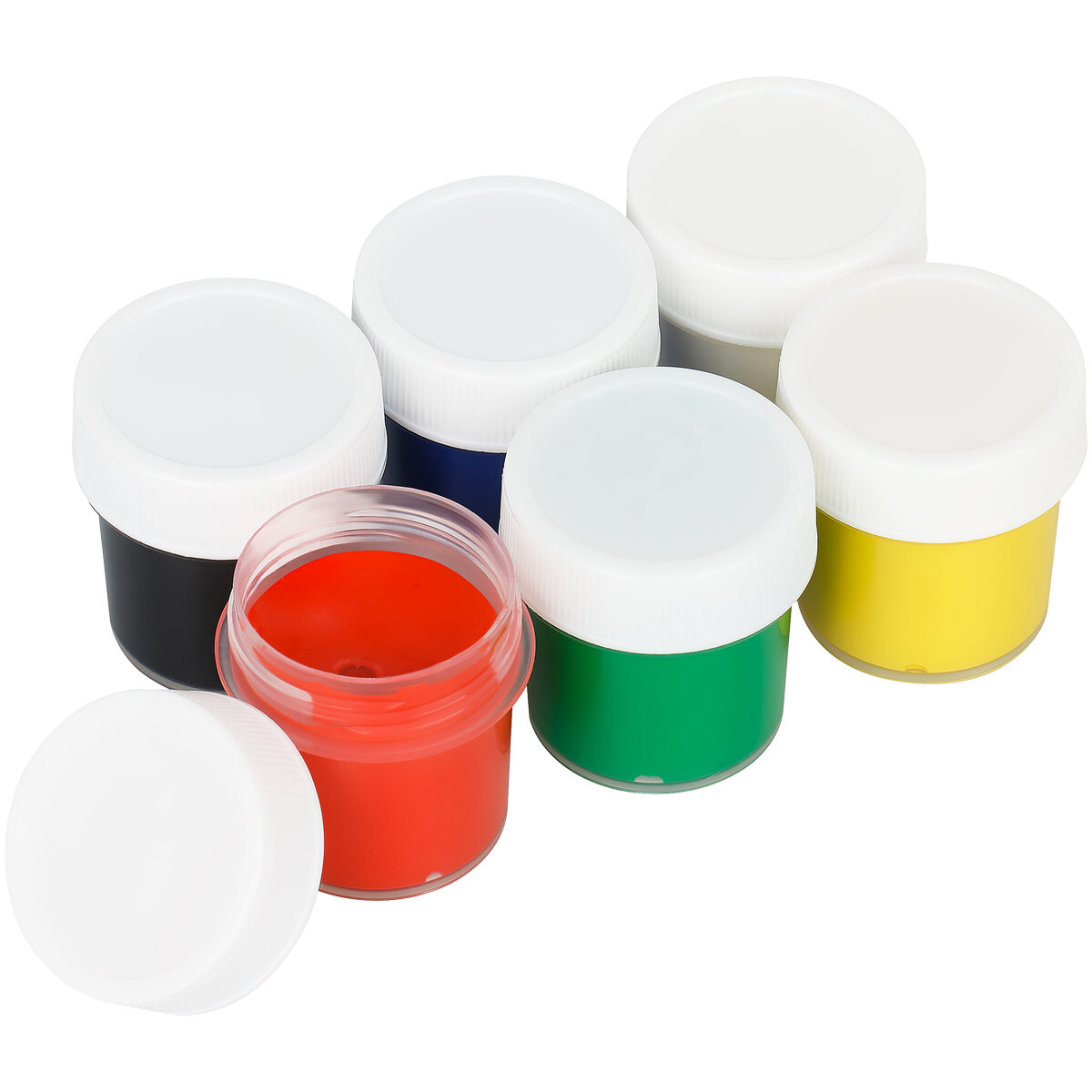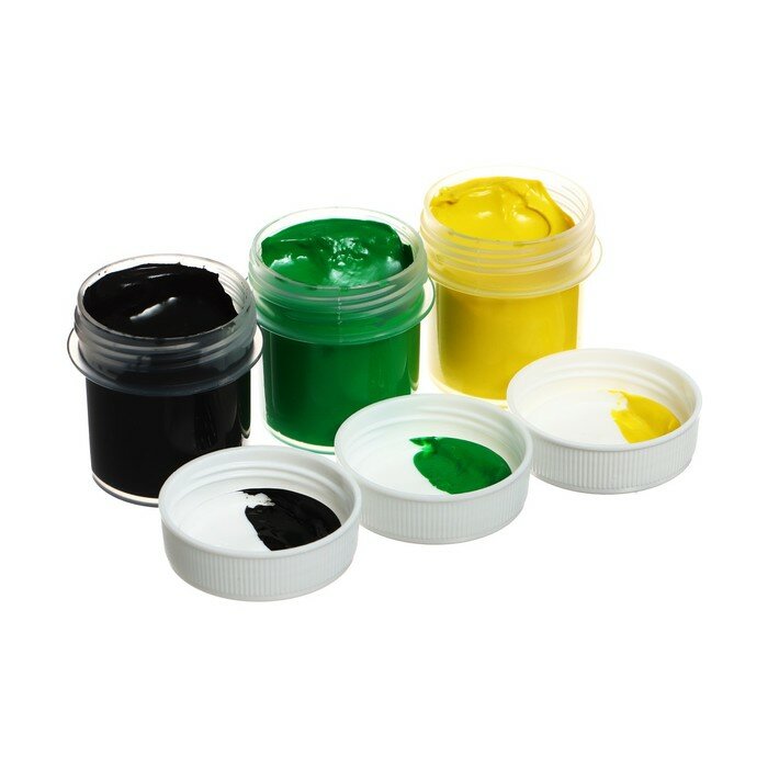 Гуашь фасуется в пластиковые герметичные баночки с завинчивающейся крышкой. Обладают хорошей кроющей способностью и чистотой цвета.