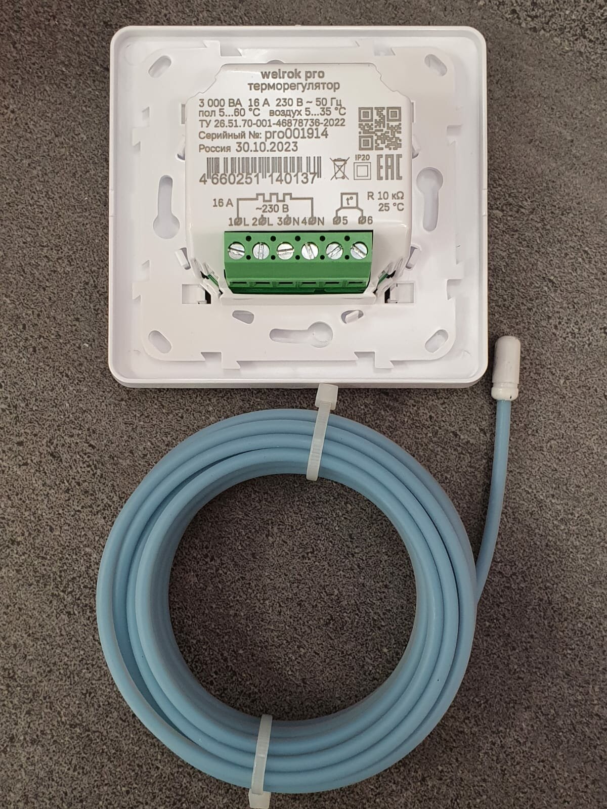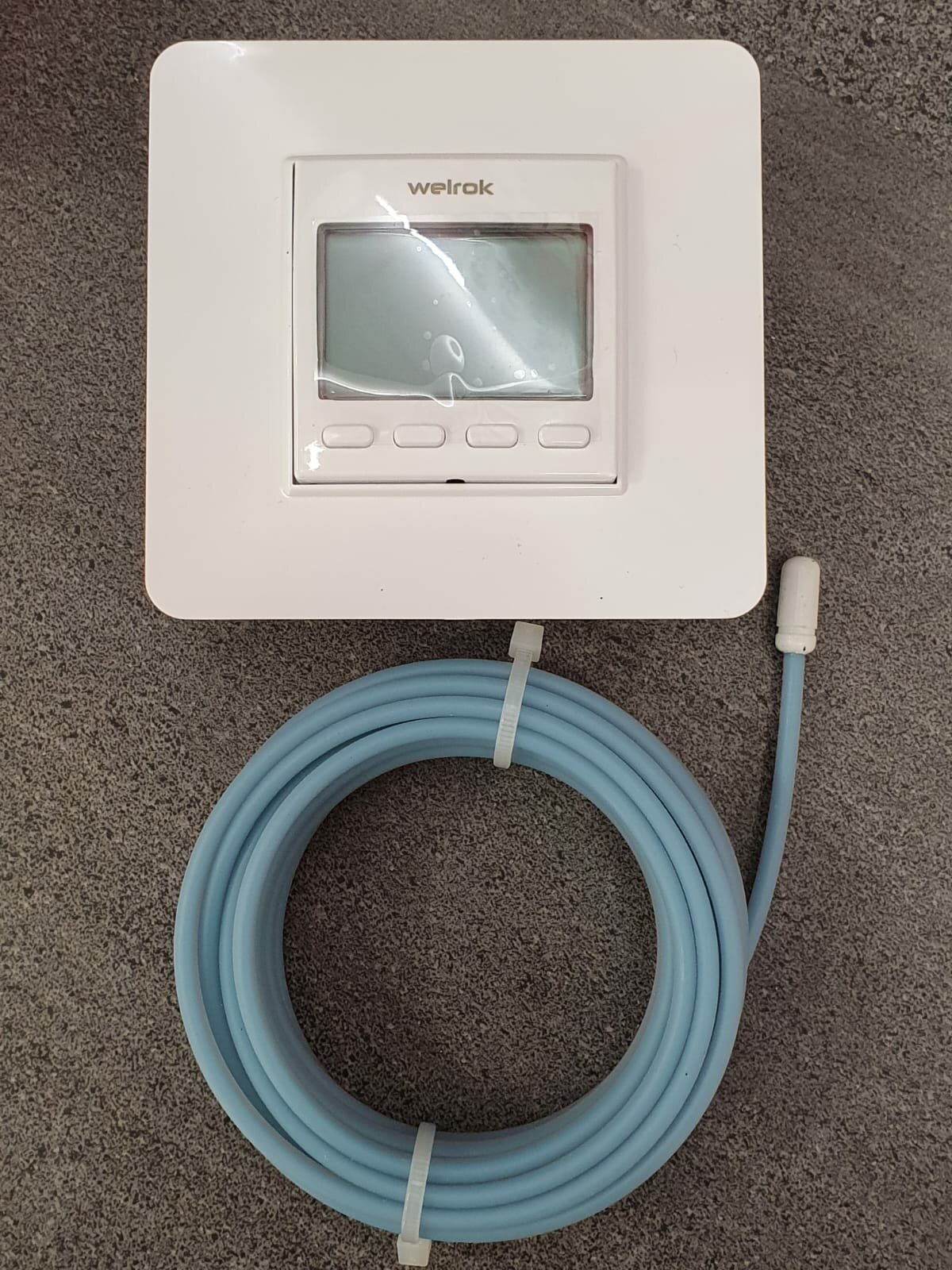 Welrok имеет 2 датчика температуры: встроенный датчик температуры воздуха и внешний датчик температуры пола. Терморегулятор также совместим с датчиками температуры пола других производителей: 4.7, 6.8, 10, 12, 15, 33, 47 кОм при 25 °C.