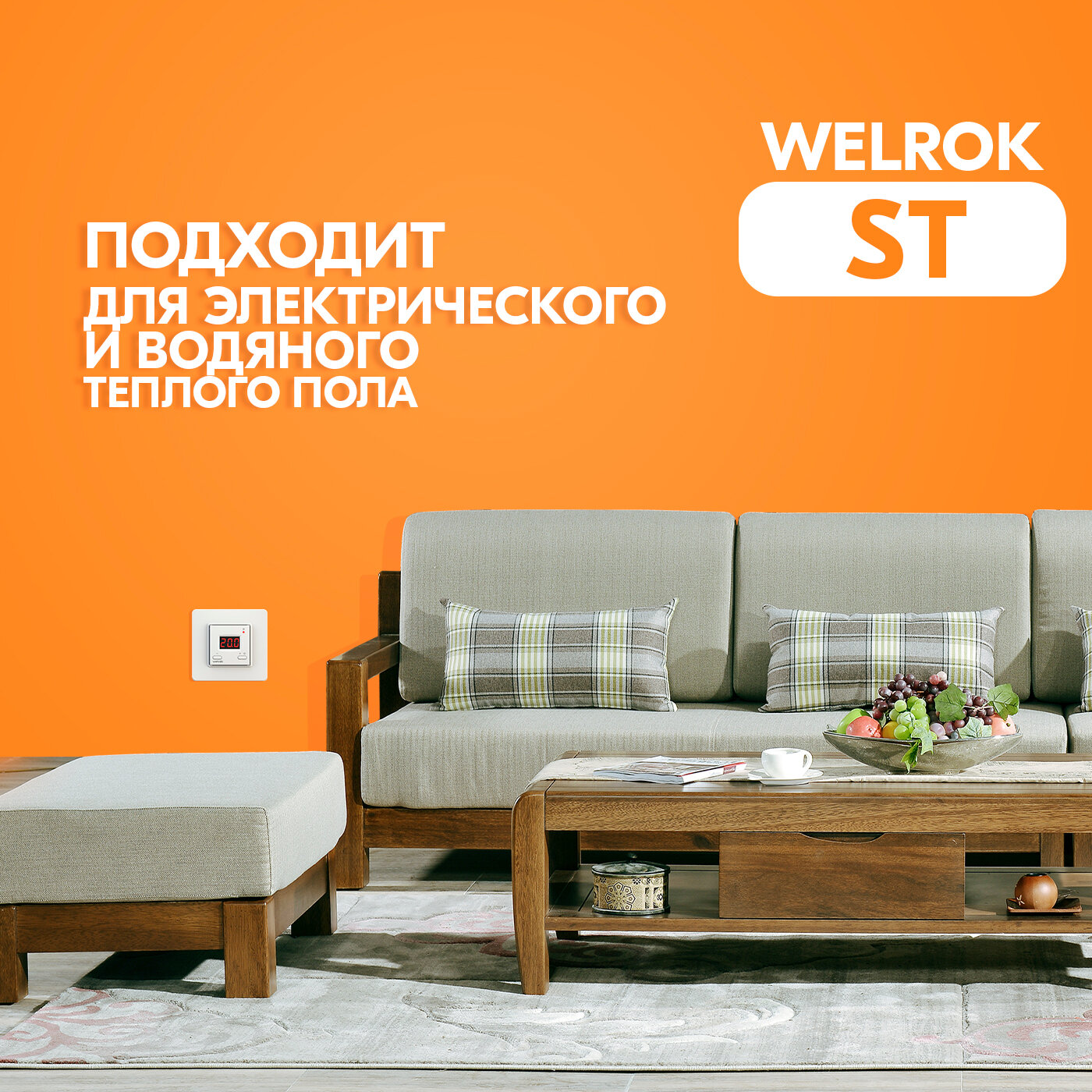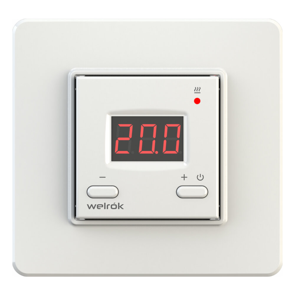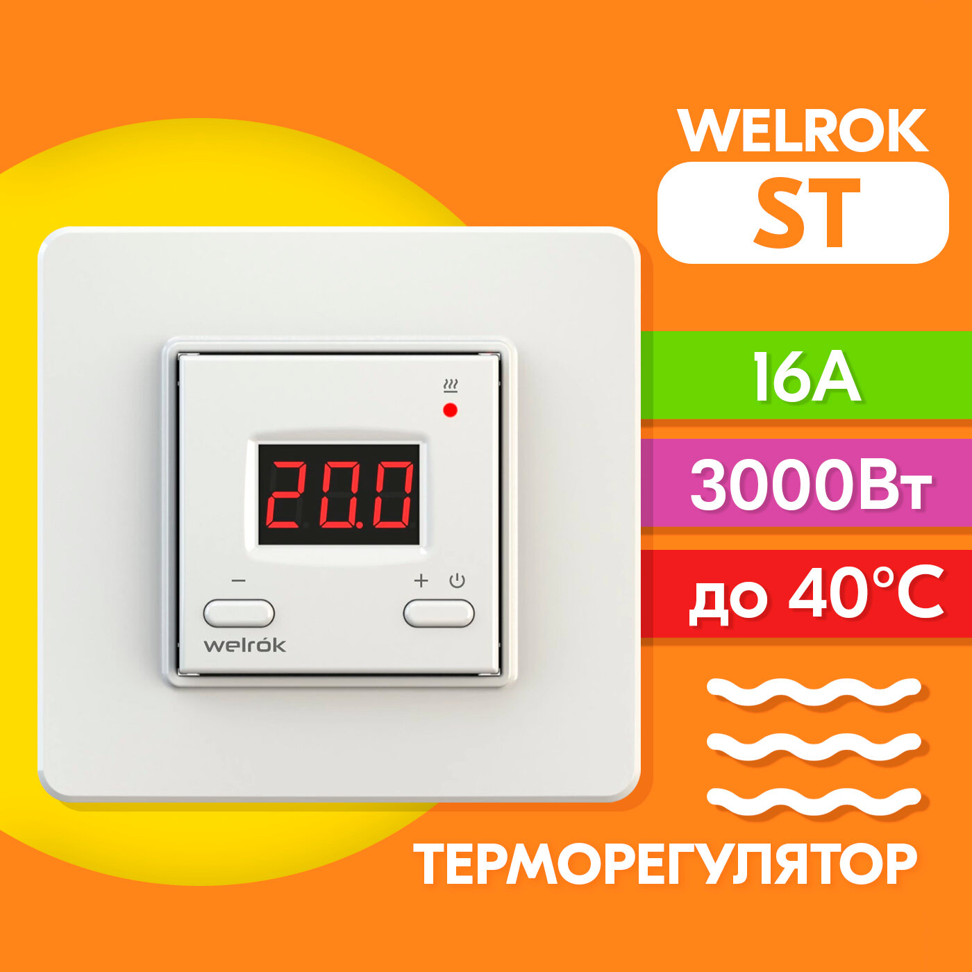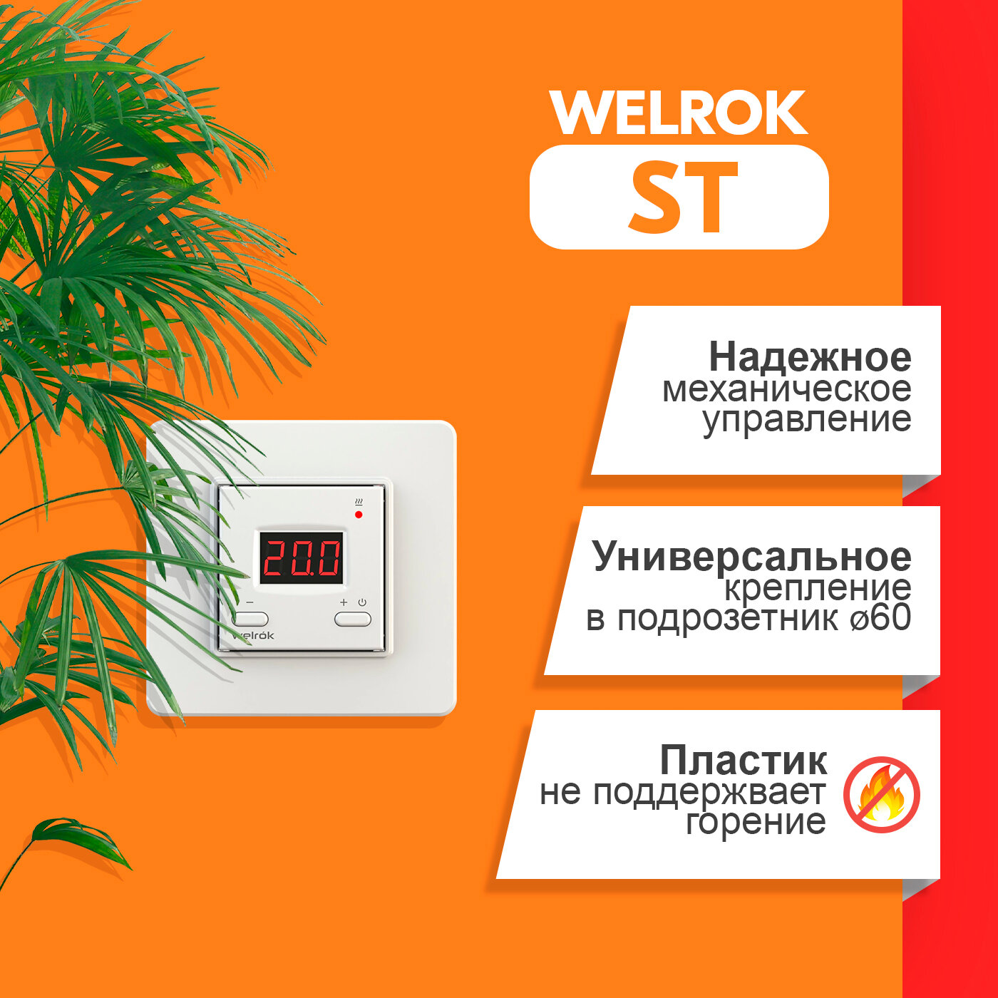 Термостат Welrok поддерживает постоянную заданную температуру в диапазоне от 5 до 40 градусов Цельсия. Измерение температуры обеспечивает выносной датчик, который идет в комплекте с устройством.