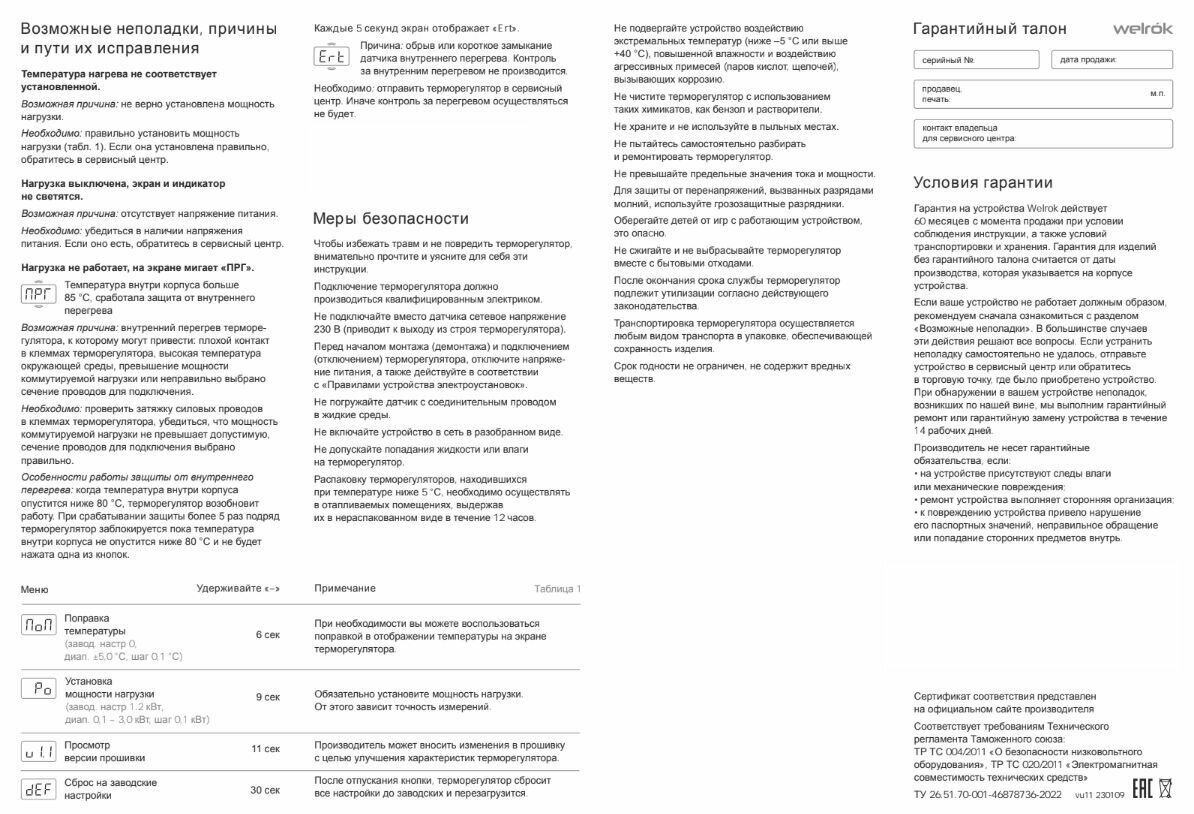 | Комплектация | датчик температуры; документация; терморегулятор |