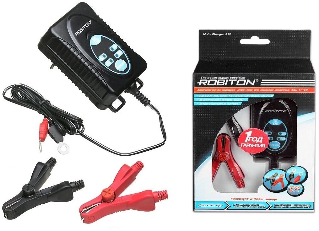 Автоматическое трехфазное зарядное устройство Robiton BL1 с микропроцессорным контролем заряда, предназначенное для заряда свинцово-кислотных АКБ 6 / 12В мотоциклов, автомобилей, снегоходов и других транспортных средств. Идеально подходит для поддержания в заряженном состоянии аккумуляторных батарей нерегулярно использующихся транспортных средств.