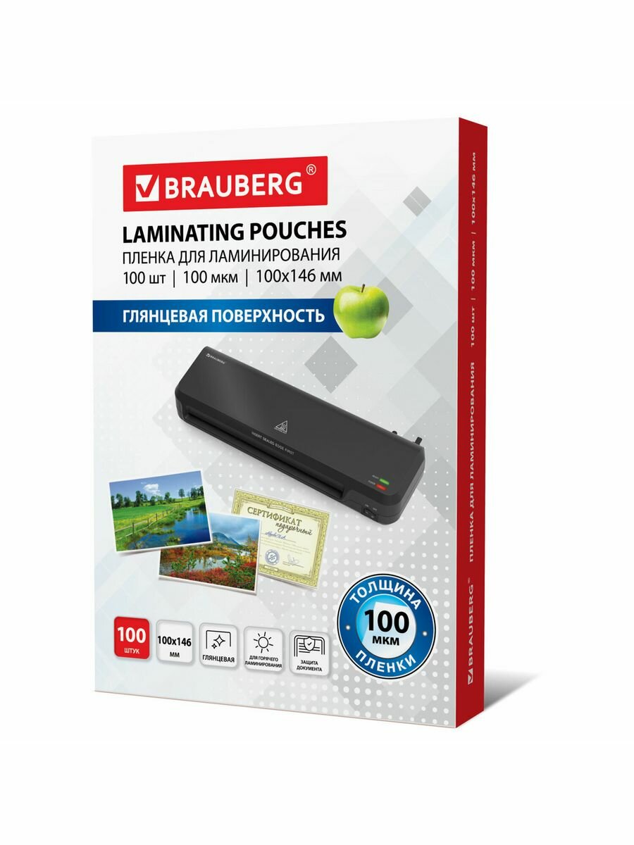 Пленка для ламинирования BRAUBERG надежно защитит документы от влаги, пыли, воздействия УФ-лучей и других внешних факторов.