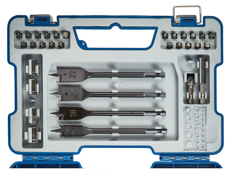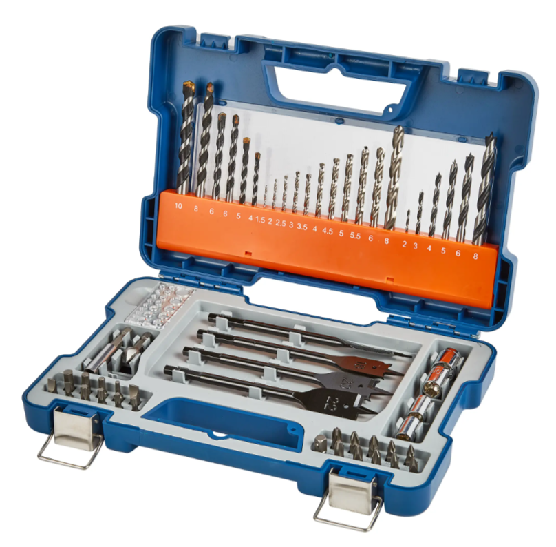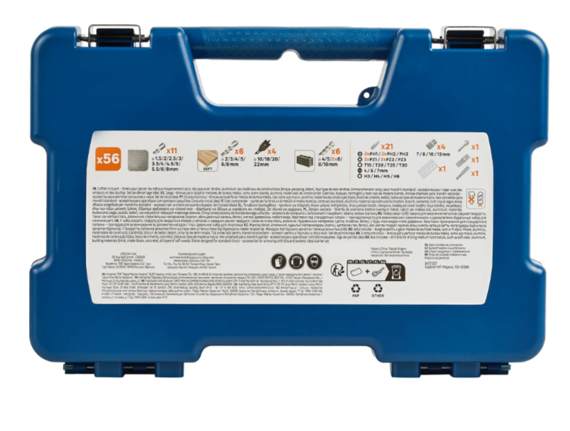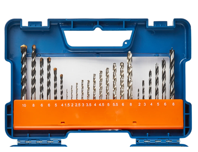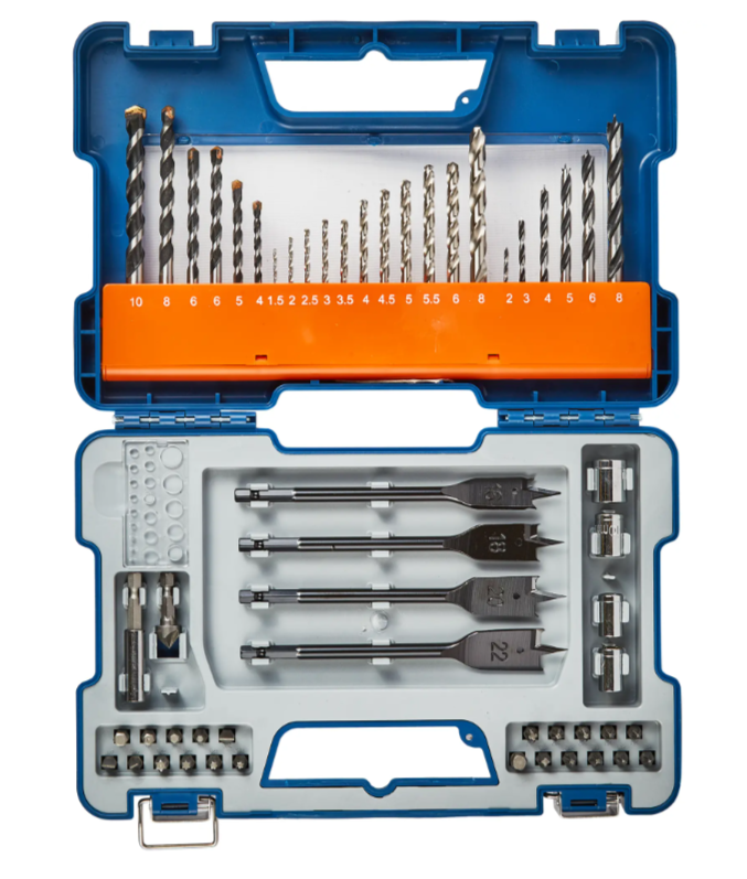 | Состав набора (количество и тип) | Сверла по металлу-11шт, сверла по дереву-6шт,сверла по бетону-6шт,перовые сверла -4 шт,биты-21 шт,переходник на коловки,зенкер,шаблон, держатель бит. |