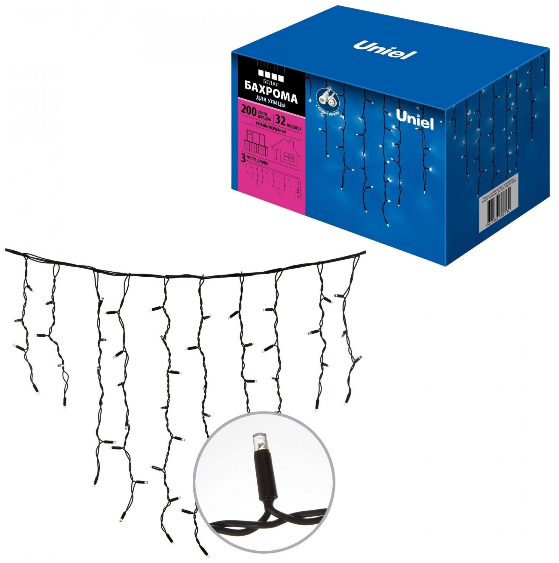 Гирлянда светодиодная бахрома Uniel ULD-B3007-200/TBK электрическая 3 м теплый белый свет 1 режим 200 ламп цвет черный