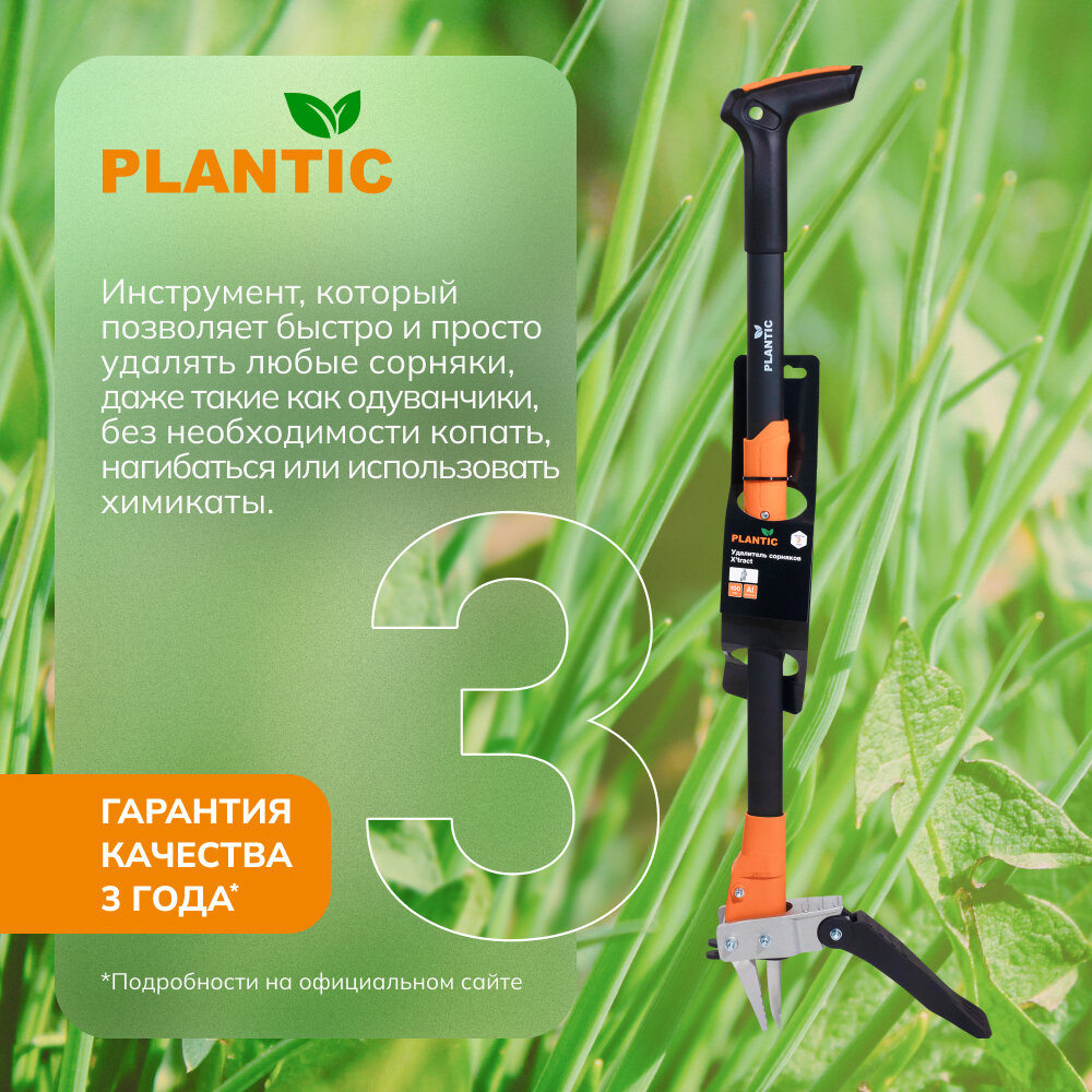 Удалитель сорняков Plantic X'tract - это замечательный инструмент, который позволяет быстро и просто удалять любые сорняки, даже такие как одуванчики, без необходимости копать, нагибаться или использовать химикаты.