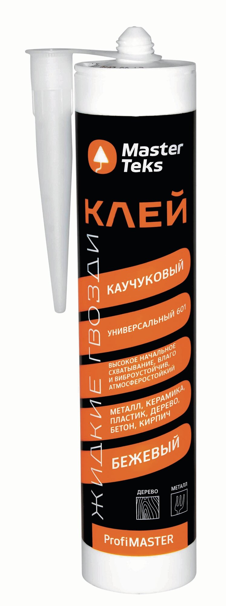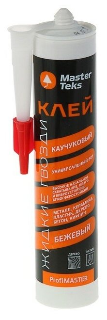**Клей универсальный Masterteks ЖГ 601** - средство с каучуковой основой, характеризующееся высоким начальным схватыванием, отличной влаго-, вибро- и атмосферостойкостью. Идеально подходит для использования с поверхностями из таких материалов, как керамика, металл, пластик, дерево, кирпич и бетон. С его помощью можно закрепить стеновые панели, декоративные элементы, плинтусы и наличники. Применяется для внутренних и наружных работ. Не рекомендуется применять для тяжелых конструкций. Наносить состав следует зигзагообразно. После высыхания клей приобретает бежевый цвет.