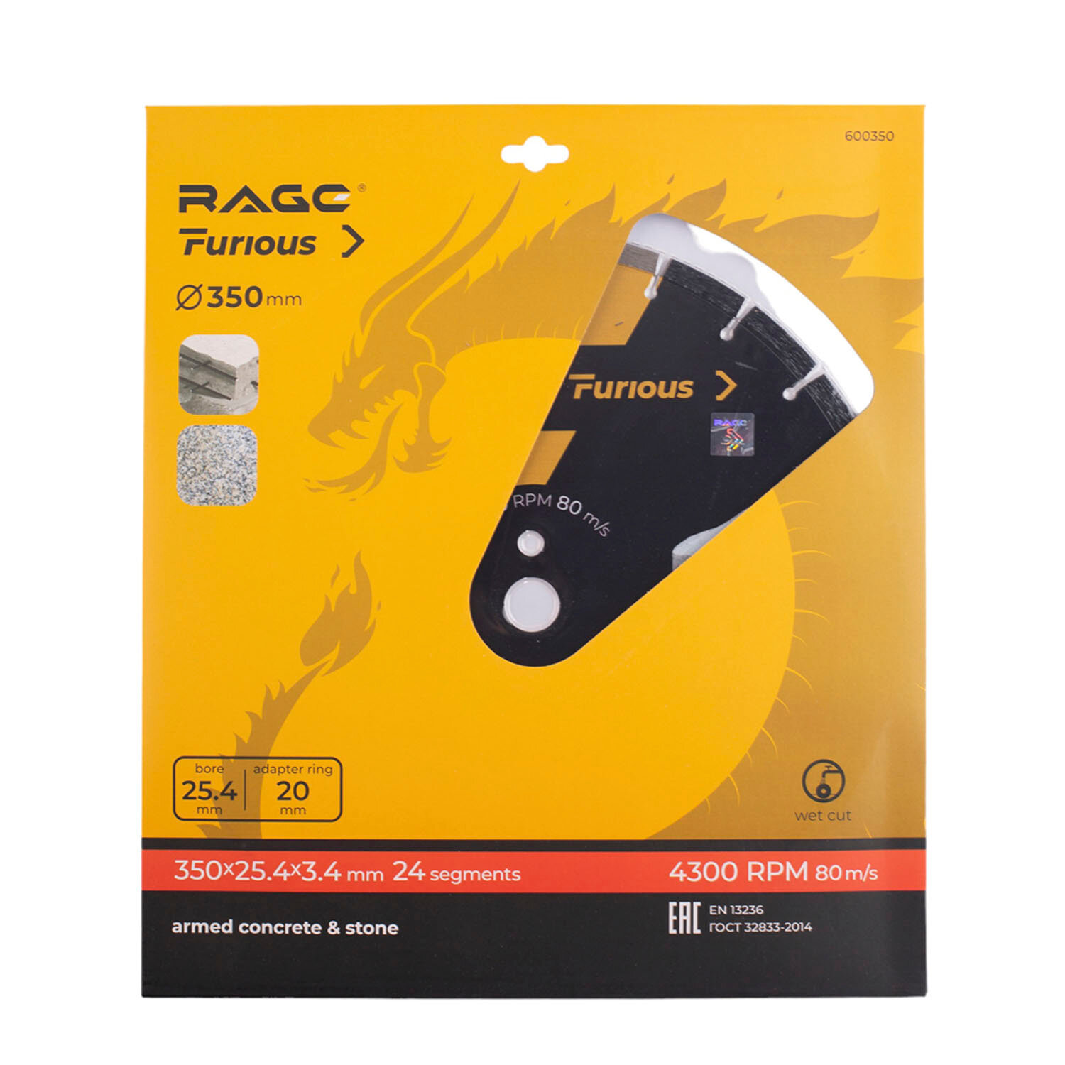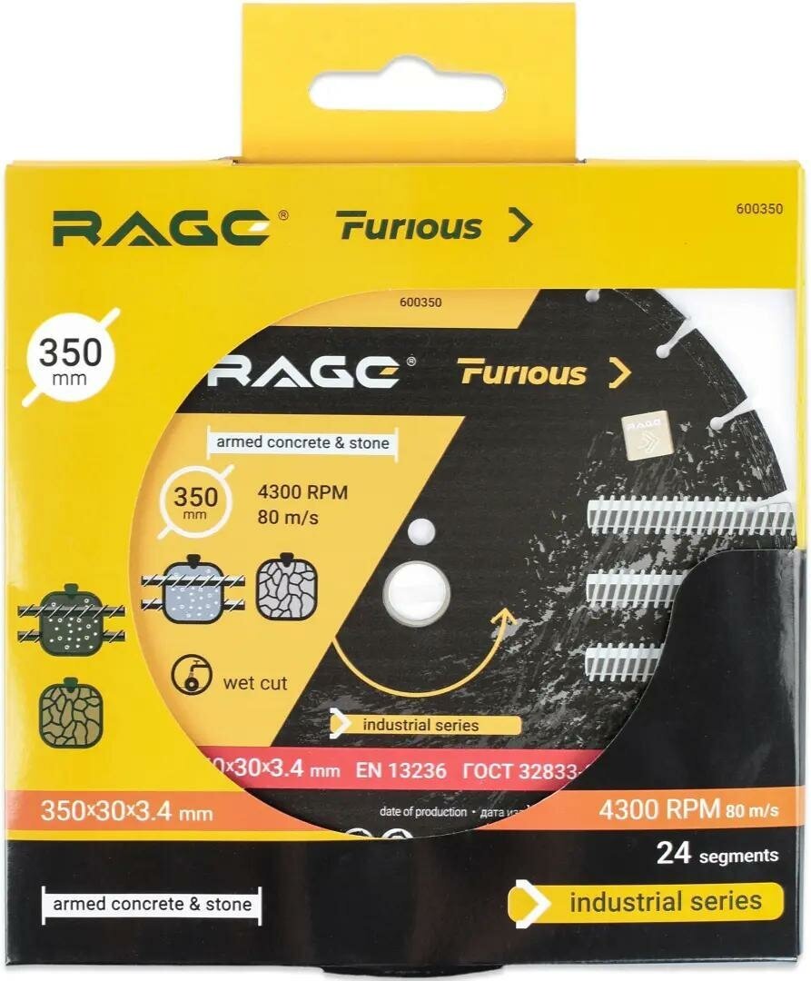 Сервис сравнения цен СкидкаГИД предлагает сравнить цены на товар «Диск алмазный сегментный по железобетону и камню Rage 600129 350x22.23x3.4 мм»