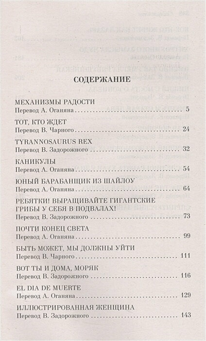 Не совсем мой жанр, думаю, а может просто не стоило начинать именно с этой книги, ведь до этого сборника, я не была знакома с творчеством Брэдбери. Эта книги про время первых тв в обычных домах, про то, как знакомятся с космосом, первые полеты. Все это ново и необычно. Однако книга пропитана чувством хаоса, тревогой за будущее, ведь, возможно, наступит конец света!