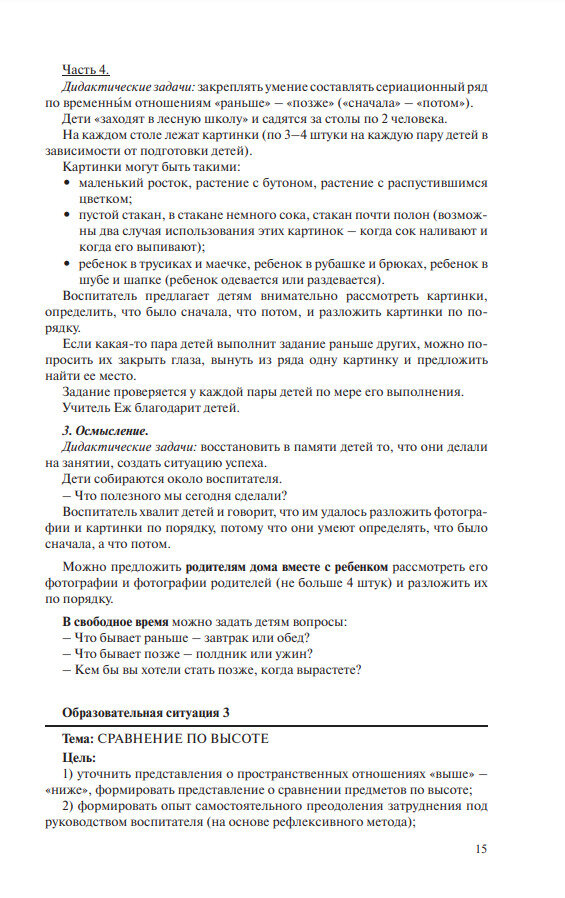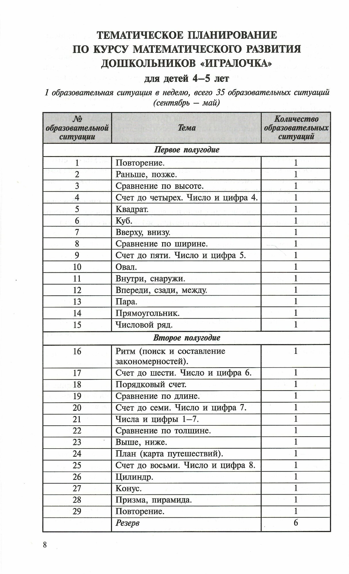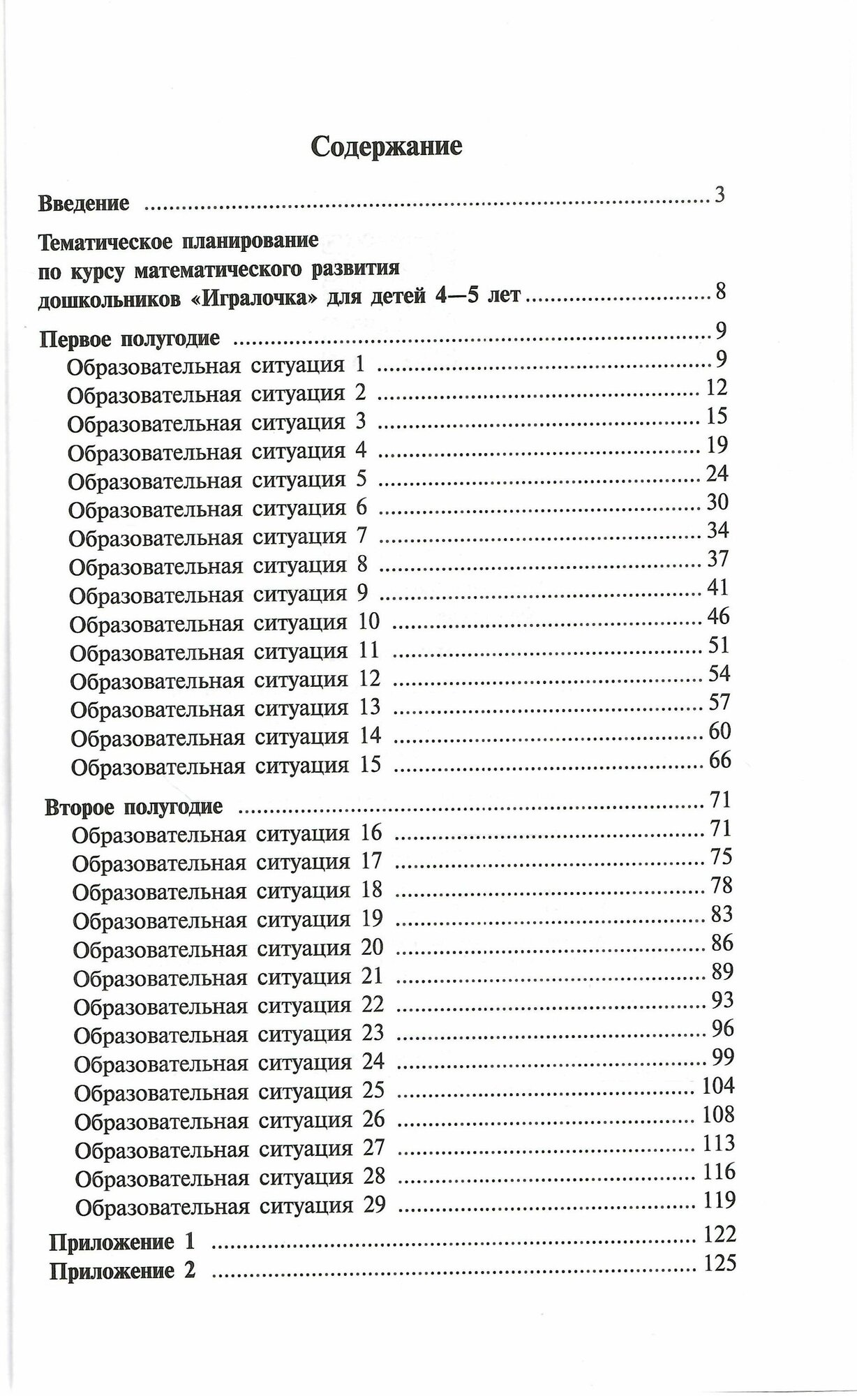 Методическое пособие «Игралочка», ступень 2 предназначено для развития математических представлений детей 4-5 лет. Содержит описание концепции, программы и технологии проведения занятий с детьми на основе деятельностного метода Л. Г. Петерсон (технологии «Ситуация»). Является составной частью учебно-методического комплекта «Игралочка» для детей 3-7 лет. В комплект также входят рабочие тетради, программа, демонстрационные и раздаточные материалы к каждому занятию. Учебно-методический комплект «Игралочка» ориентирован на развитие у дошкольников мышления, творческих способностей, интереса к математике. Является начальным звеном непрерывного курса математики « Учусь учиться » от 3 до 15 лет. Его непосредственным продолжением служат учебники математики Л. Г. Петерсон для начальной и основной школы. Входит в комплексную программу дошкольного образования «Мир открытий». Может использоваться в качестве парциальной программы математического развития детей в дошкольных образовательных организациях всех типов и для индивидуальных занятий с детьми. Пособие адресовано специалистам по дошкольному образованию, студентам педагогических колледжей и вузов.
