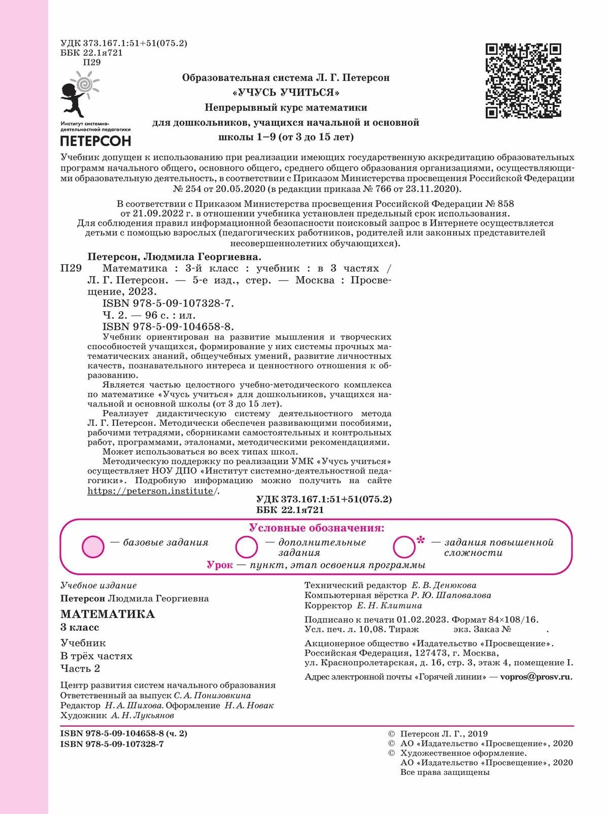Математика. 3 класс. Учебник. Непрерывный курс математики Учусь учиться. В трех частях. Часть 2 (Петерсон Людмила Георгиевна); Просвещение, 2023