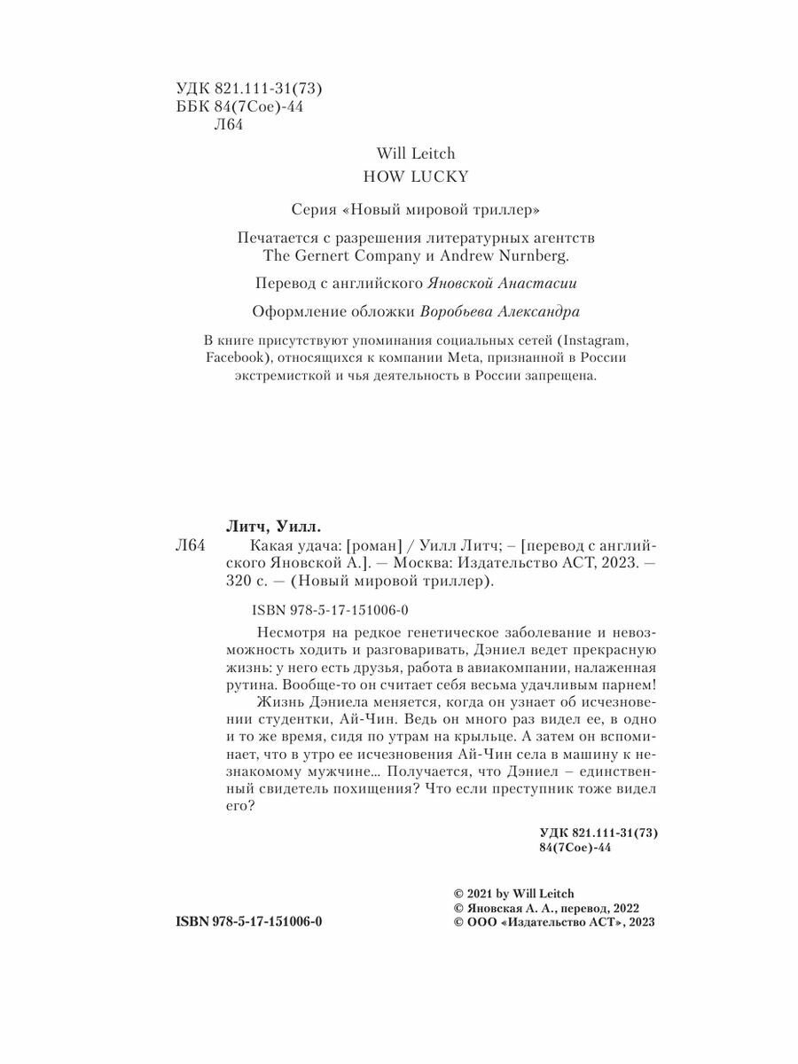 Книга: Какая удача (Уилл Литч); Издательство АСТ, 2021