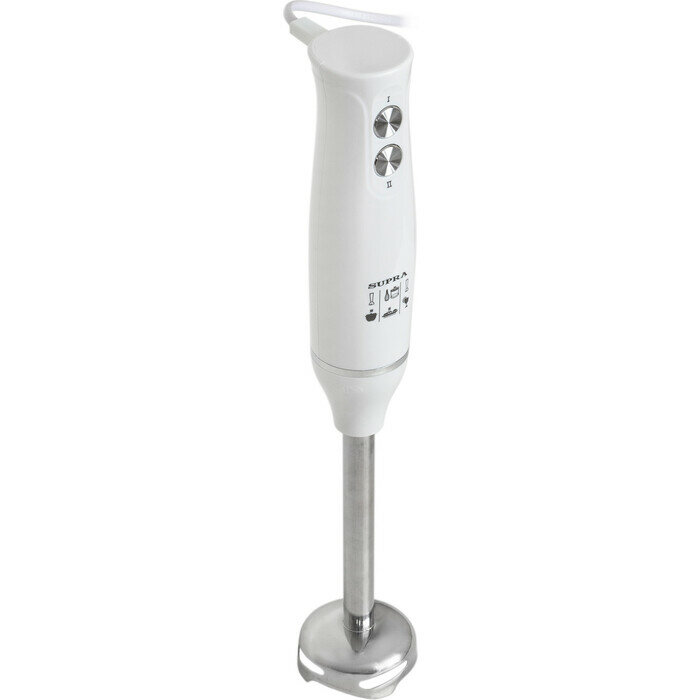Блендер погружной Supra белый, мощность 1000Вт, материал погружной части нержавеющая сталь