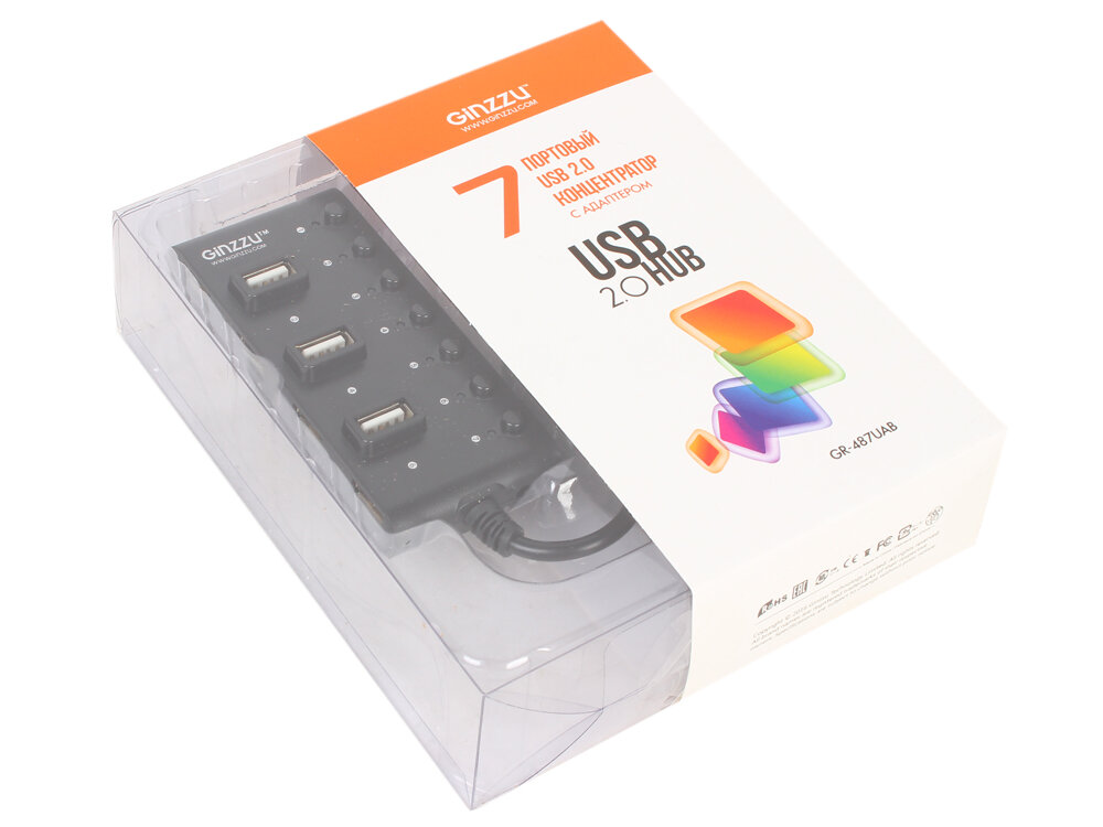 USB-хаб Ginzzu GR-487UAB GR-487UAB 7x USB 2.0