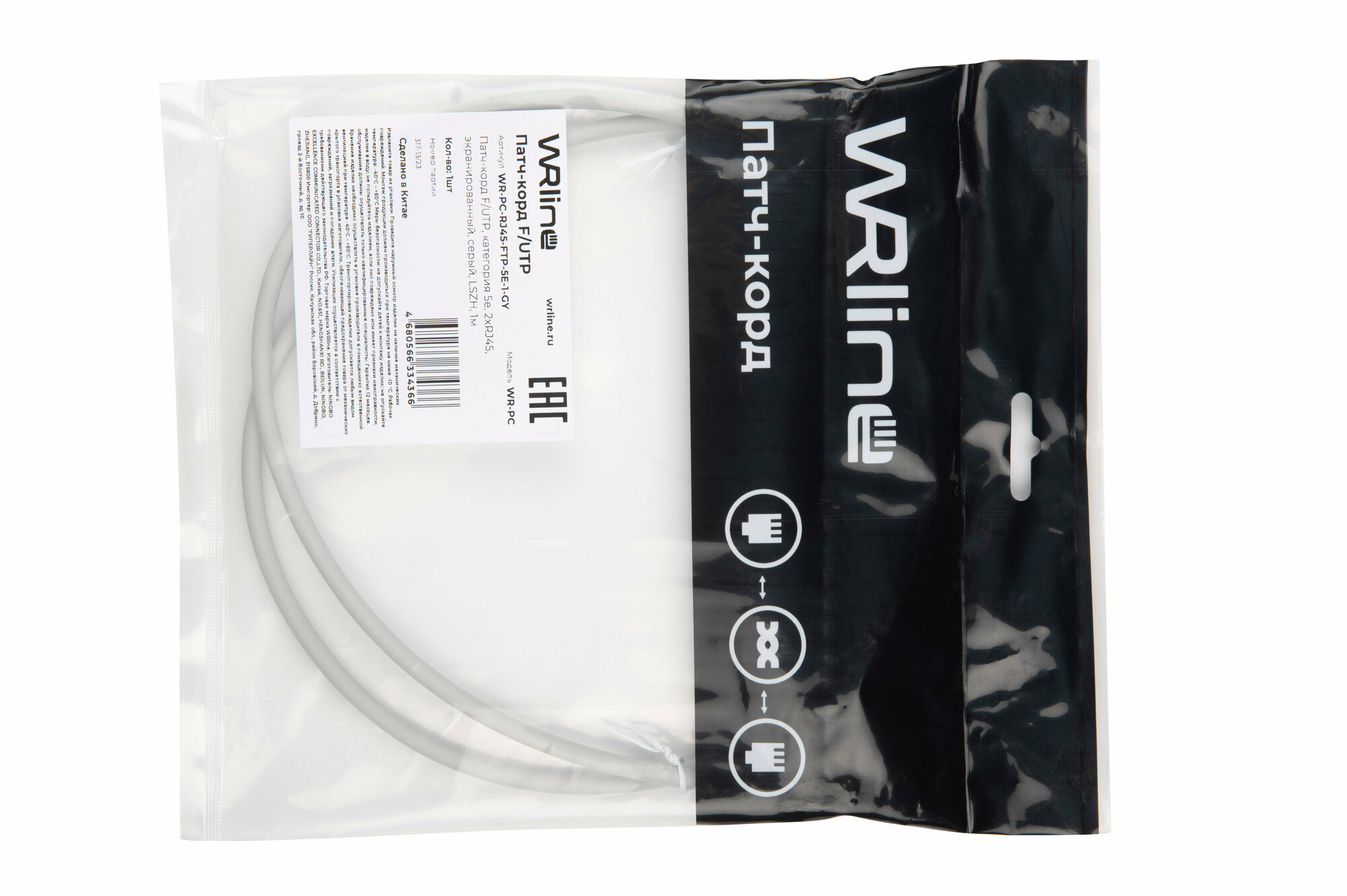 Кабель патч-корд F/UTP 5e кат. 1м WRLine 2xRJ45 экранированный серый LSZH WR-PC-RJ45-FTP-5E-1-GY