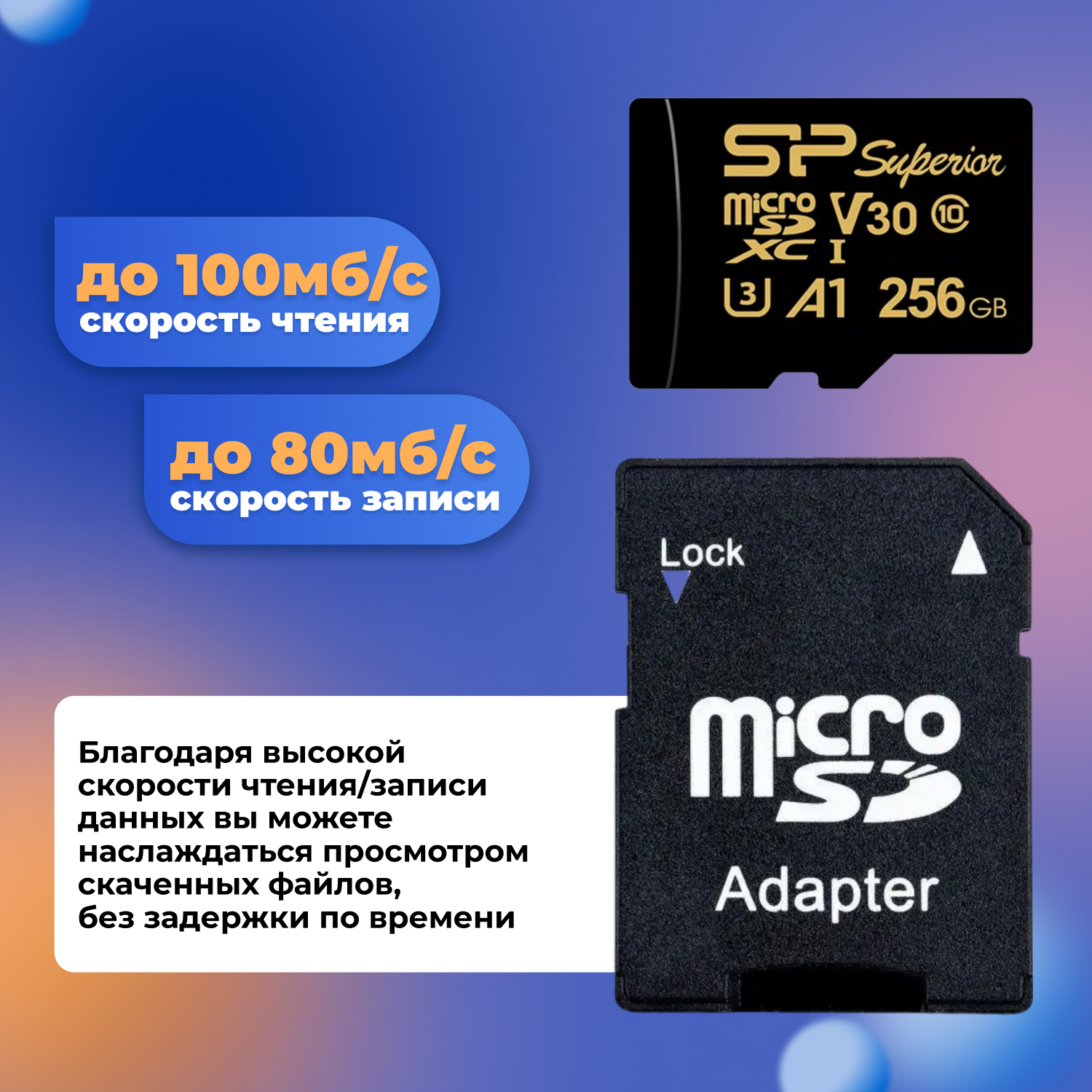 Карта памяти MicroSDXC 256GB Silicon Power Class 10 UHS-I U3 A1 100/80 Mb/s (SD а Superior Golden A1