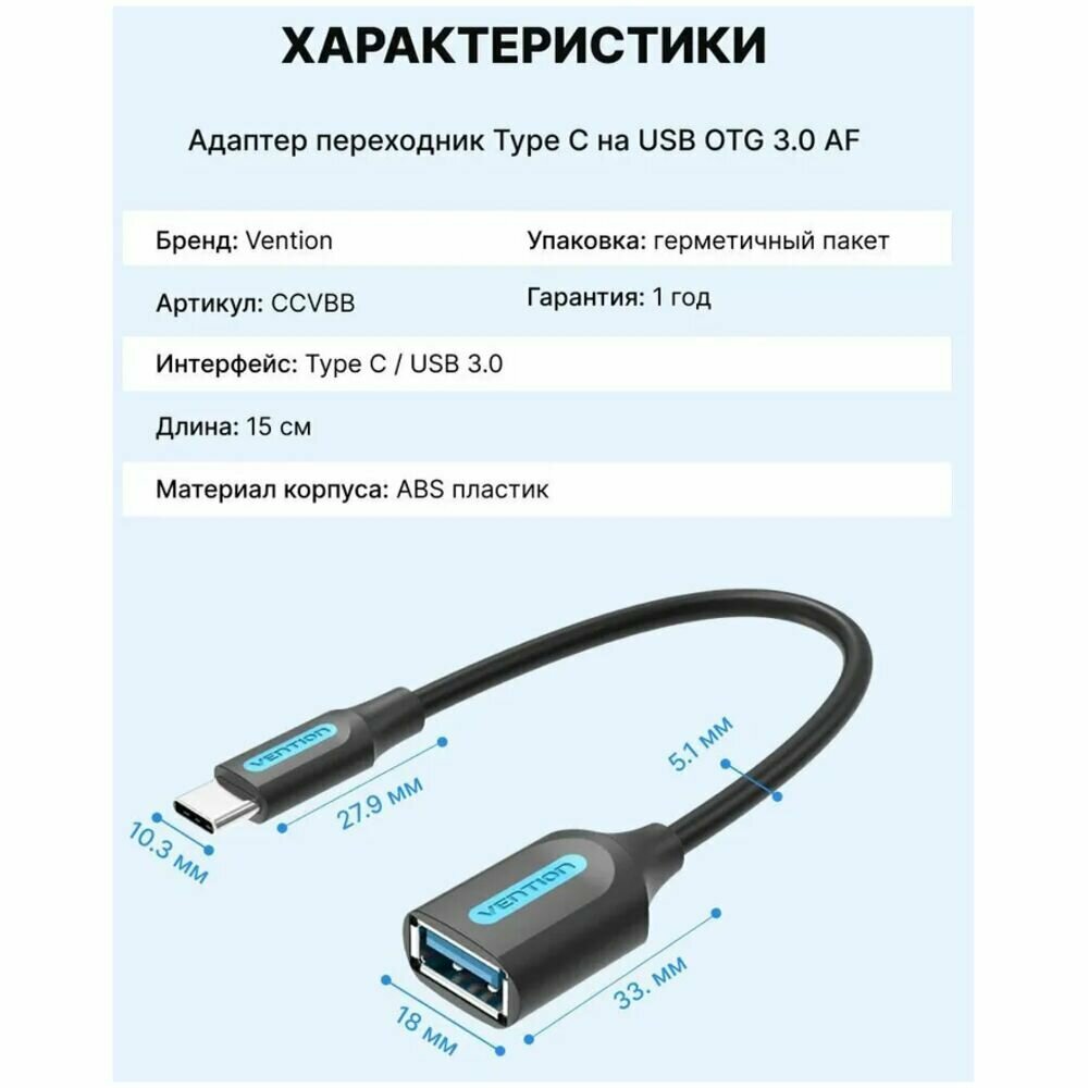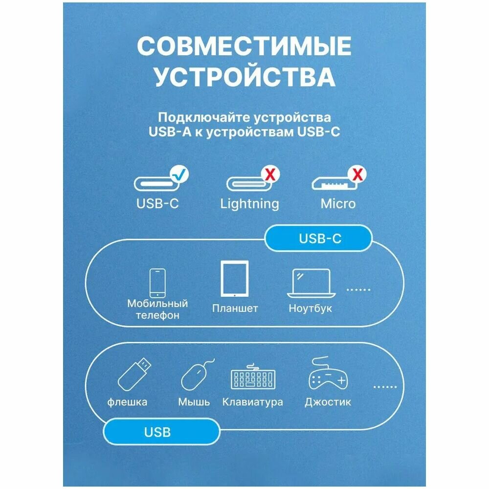 | Разъемы | USB Type-C (m) (прямой) - USB 3.0 A(f) (прямой) |