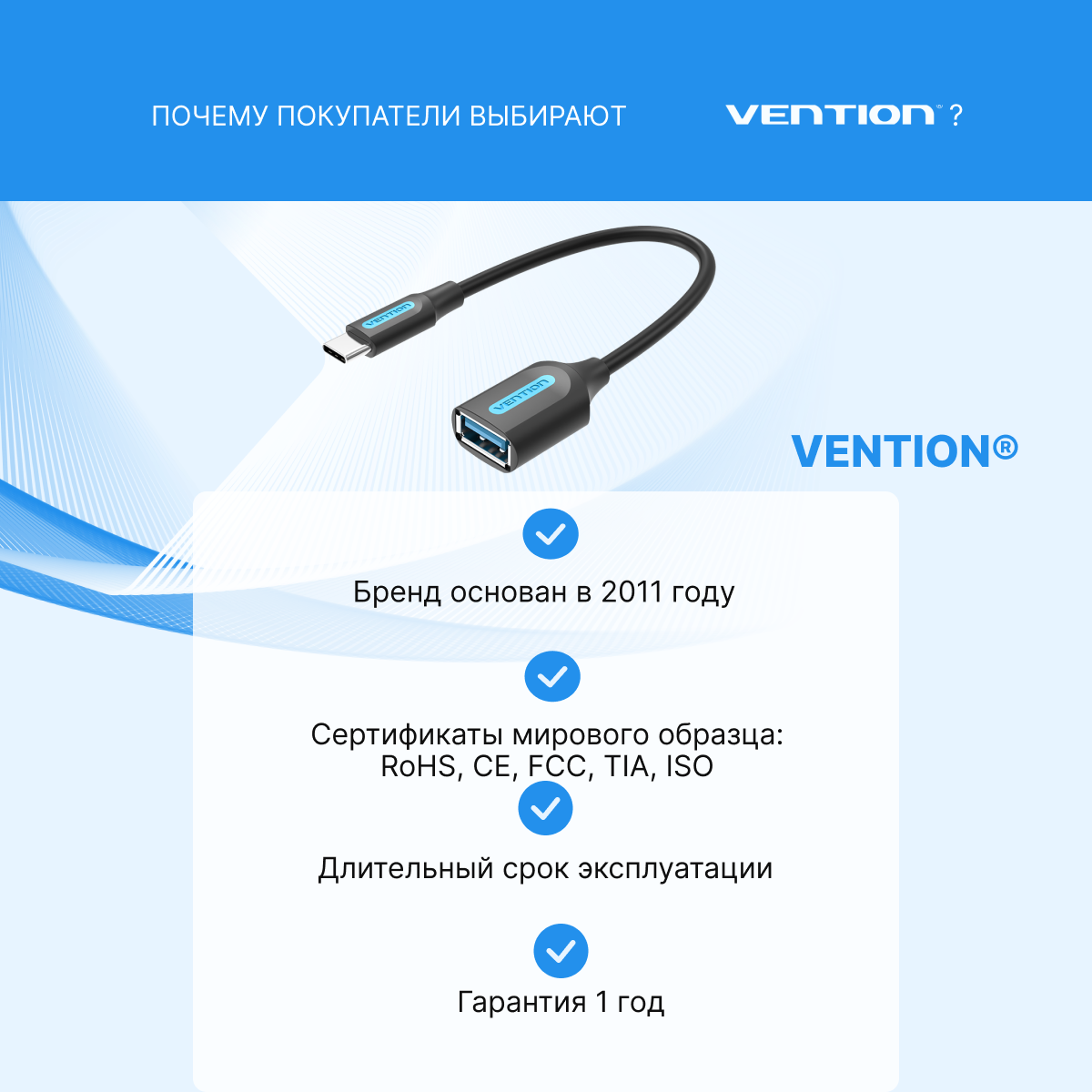 Адаптер Vention USB CM/ OTG USB 3.0 AF гибкий - 015м. CCVBB