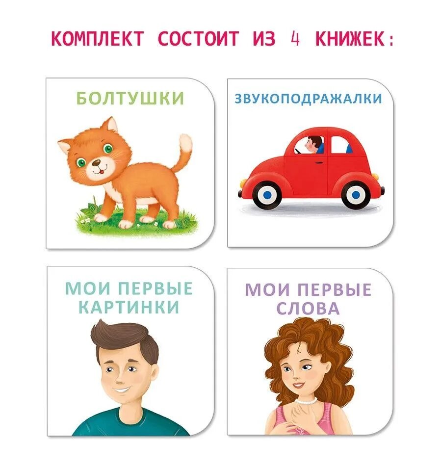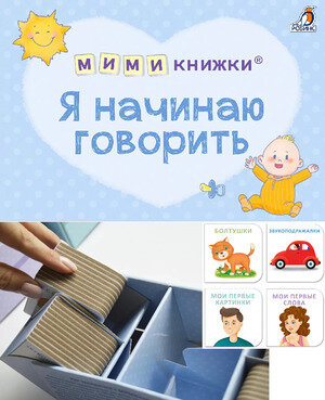 «Я НАЧИНАЮ ГОВОРИТЬ» - набор состоит из 4 книжек, которые включают в себя первые слова и картинки с предметами, окружающими малыша, звукоподражалки и болтушки для запуска речи.