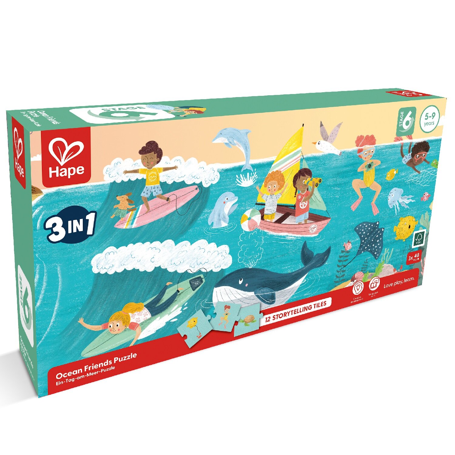 Пазл для детей Океанические друзья серия Умняша 3в1 156 элементов Hape E1645_HP Пазл Океанические друзья Умняша 3 в 1 (156 элементов)
