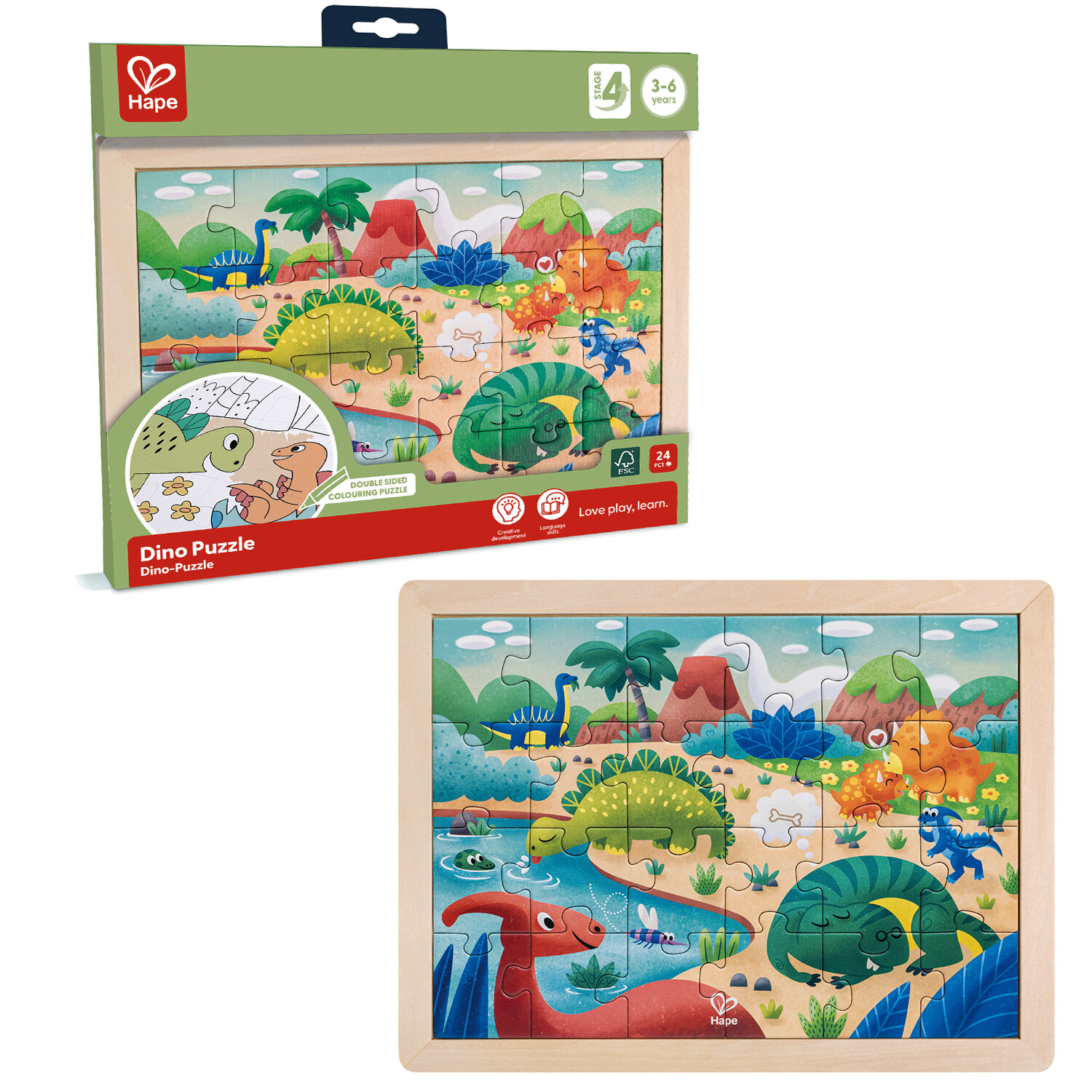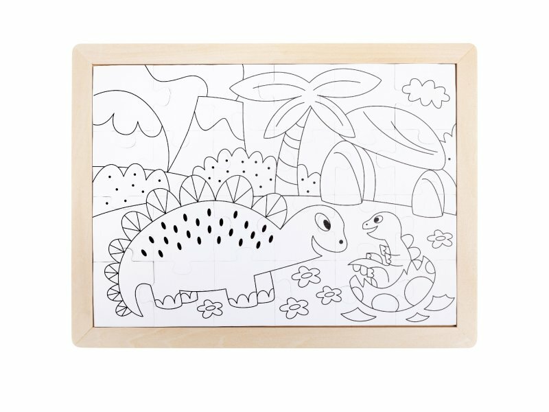 Пазл для детей Динозавры 2в1 (пазл и раскраска в рамке) серия Умняша Hape E1641_HP Пазл и раскраска Динозавры Умняша 2 в 1