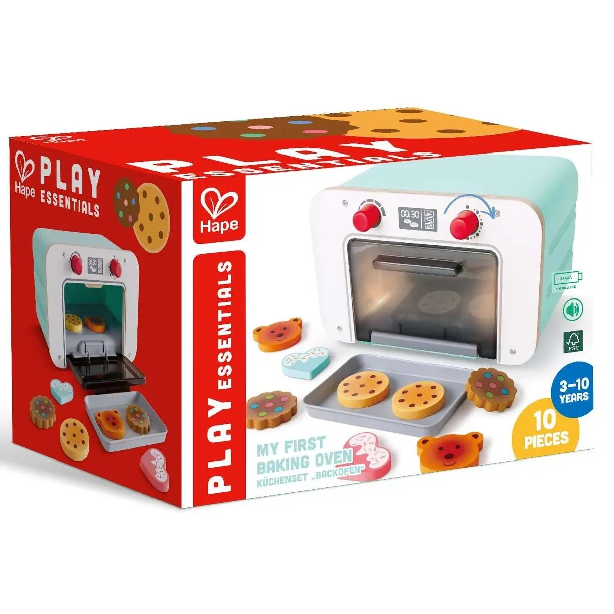 Детская кухня 2в1 Hape со светом звуком сменой цвета игрушечной выпечки E3199_HP Детская игрушка кухня Набор пекаря 2 в 1
