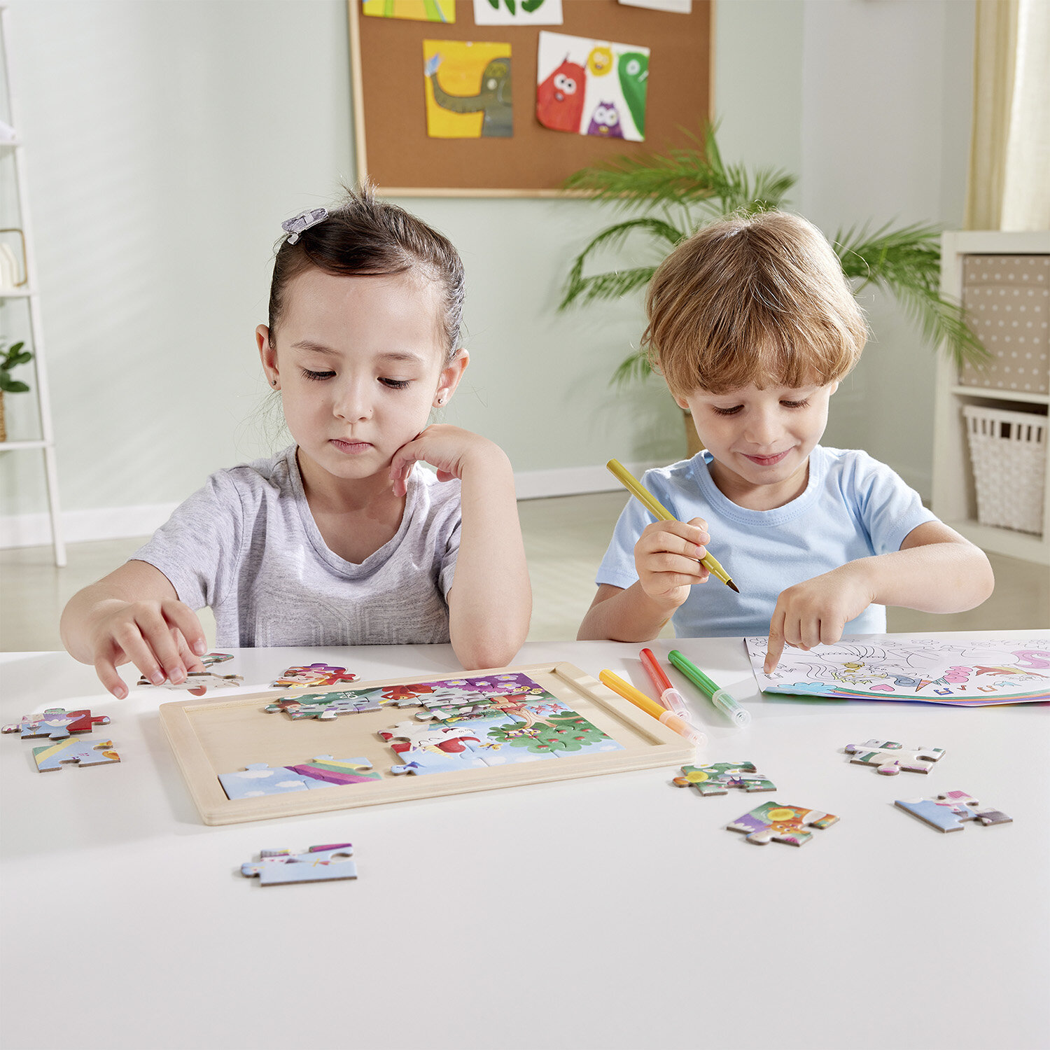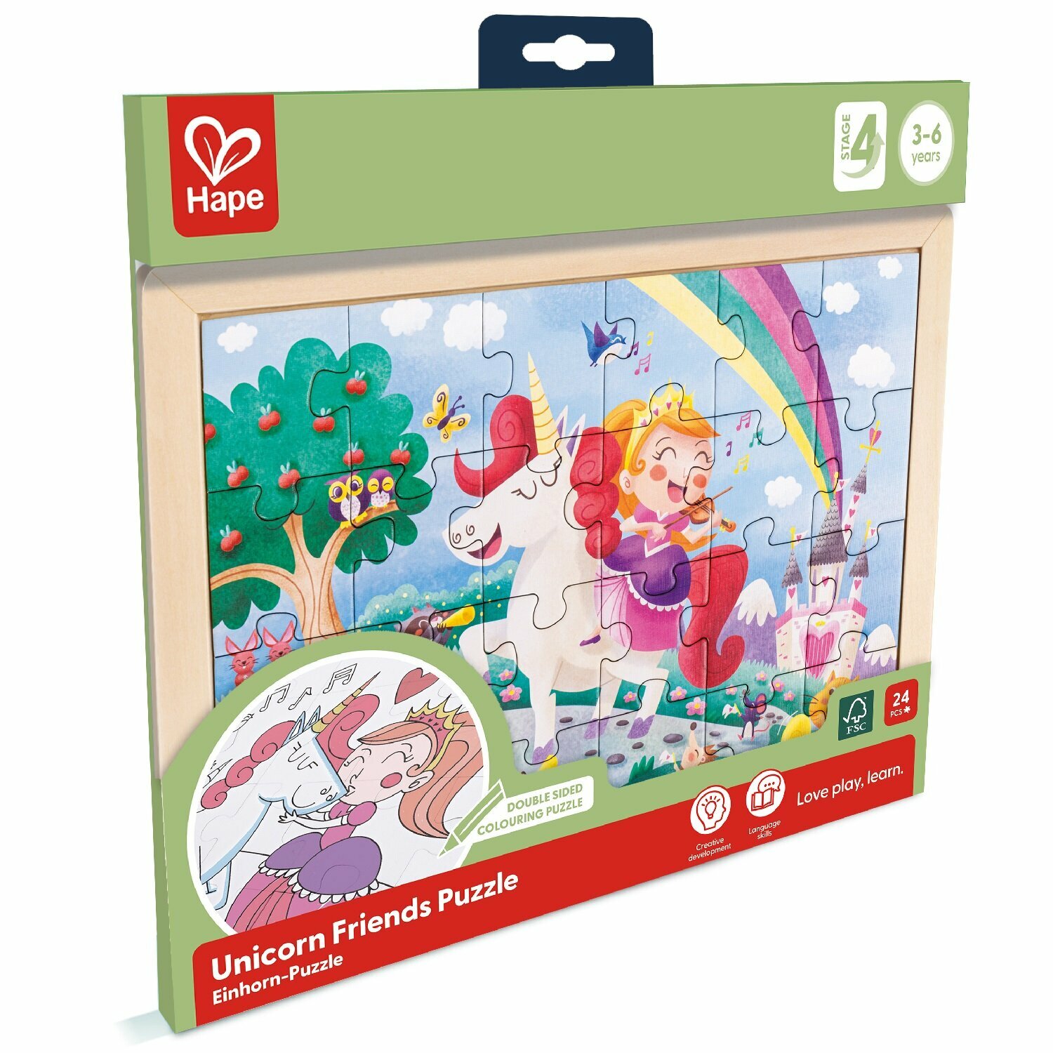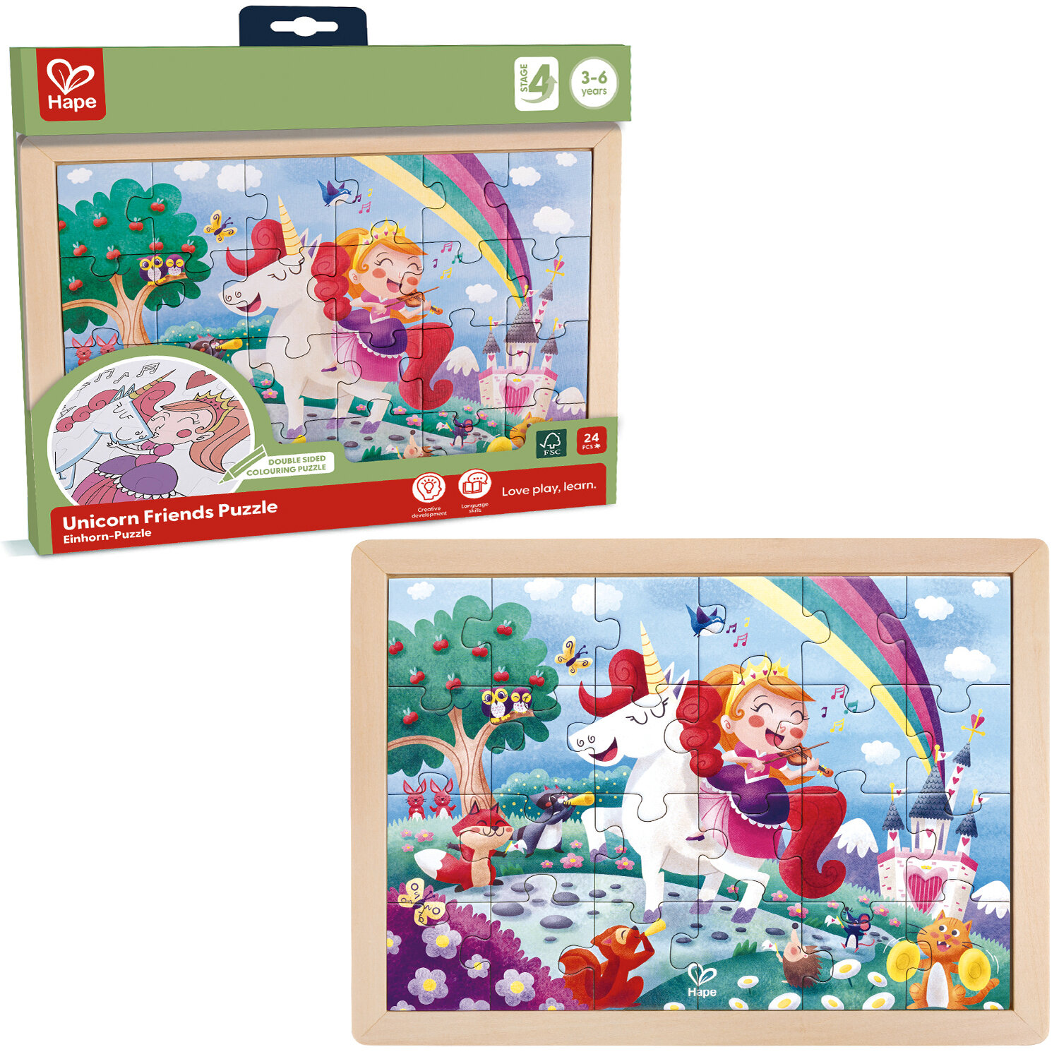 Пазл для детей HapeЕдинорог и принцесса - вместе навсегда 2в1 E1642_HP Пазл и раскраска Единорог и принцесса вместе навсегда 2 в 1