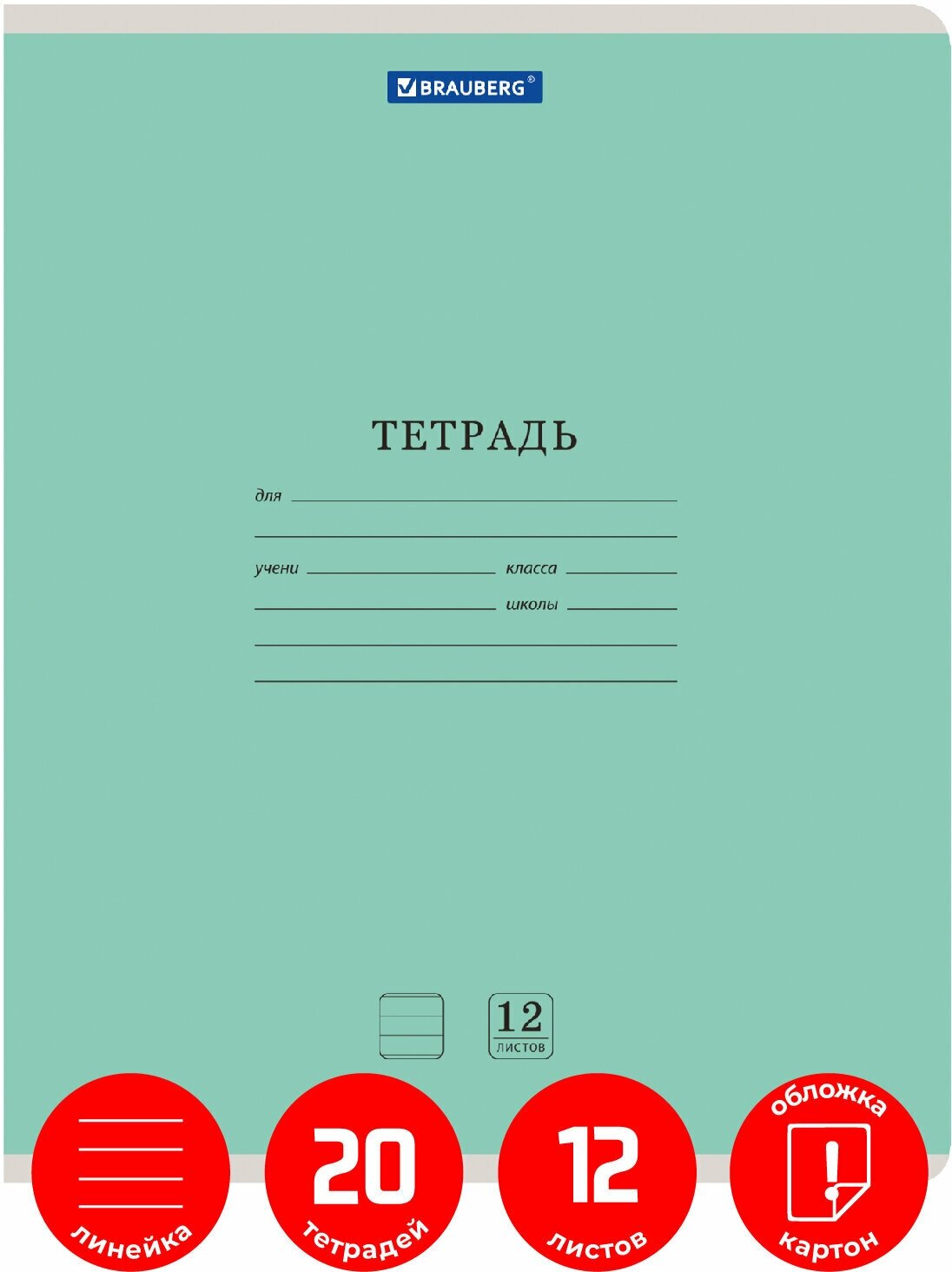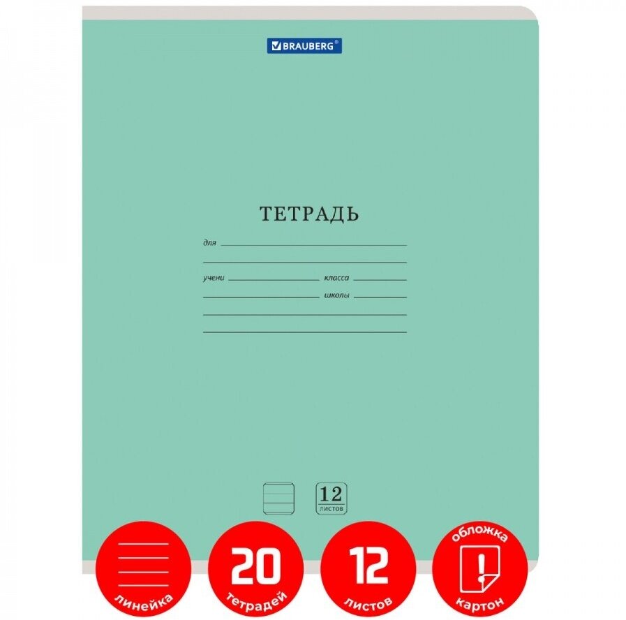 Комплект тетрадей Классика New 12 листов линия 20 шт Brauberg 880053