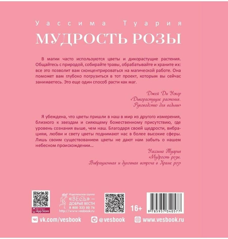 В книге «Мудрость розы» Уассима Туария рассказывает о чудесных созданиях — цветах. И в первую очередь автор пишет о розах: эти растения с древнейших времен считаются символом красоты и имеют сильнейший энергетический потенциал.