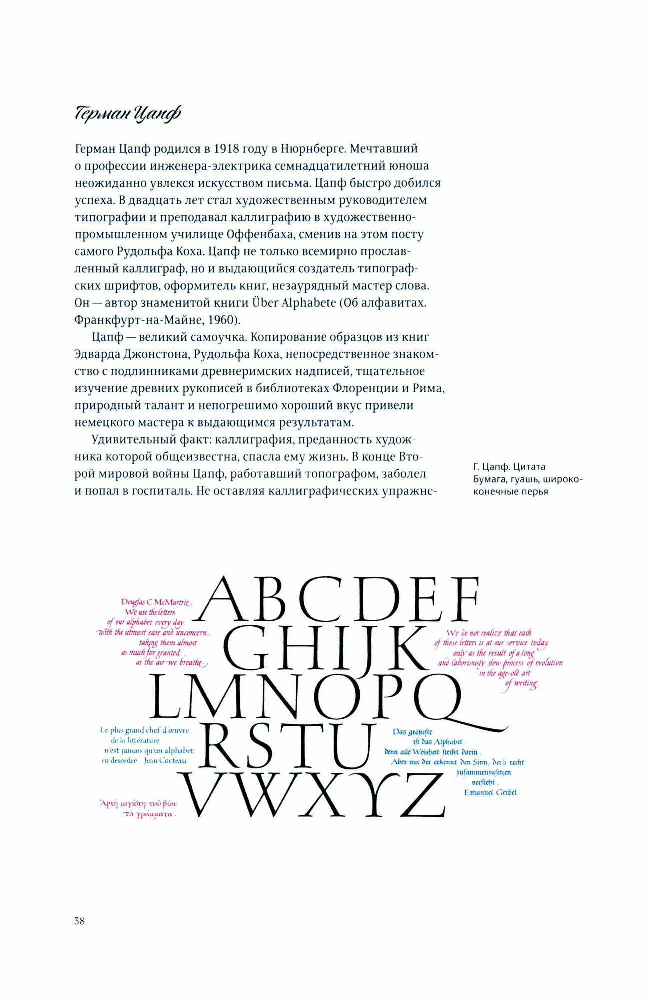 Издание богато иллюстрировано — в него вошли уникальные произведения известных художников многих стран, в том числе ранее не публиковавшиеся, которые заинтересуют и новичков, и мастеров шрифта.