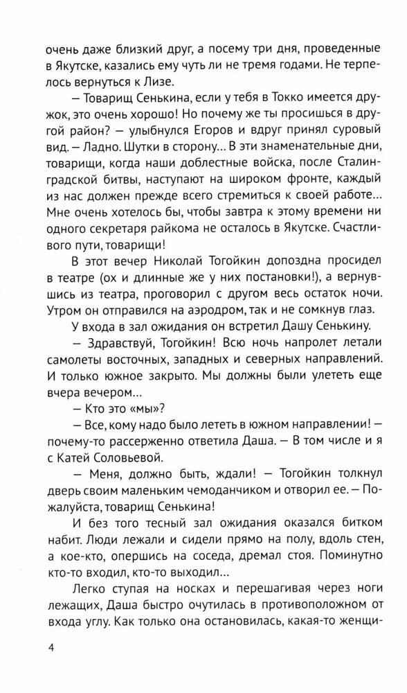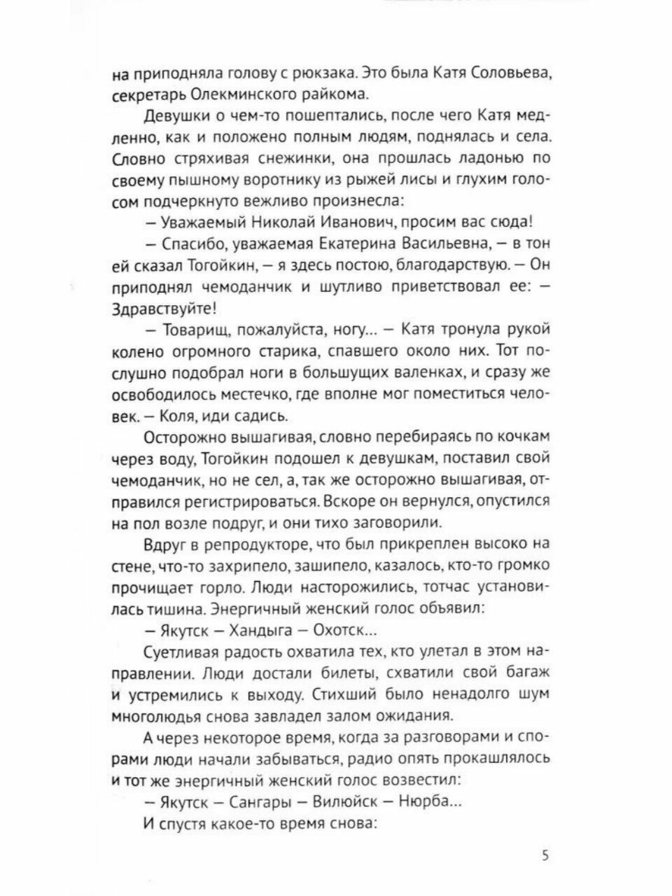 Повесть-катастрофа, основанная на реальных событиях. В 1945 году в далекой Якутии, известной своими суровыми холодами, терпит крушение самолет. Оба пилота погибают. Остальные члены экипажа и случайные пассажиры — среди них две молоденькие девушки — получают травмы разной степени тяжести.