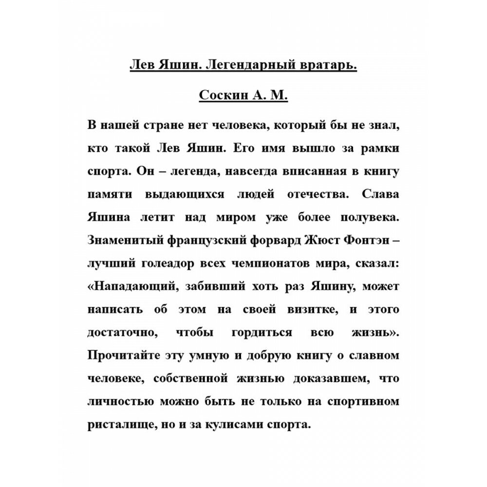 В нашей стране нет человека, который бы не знал, кто такой Лев Яшин. Его имя вышло за рамки спорта. Он – легенда, навсегда вписанная в книгу памяти выдающихся людей отечества. Слава Яшина летит над миром уже более полувека. Знаменитый французский форвард Жюст Фонтэн – лучший голеадор всех чемпионатов мира, сказал: «Нападающий, забивший хоть раз Яшину, может написать об этом на своей визитке, и этого достаточно, чтобы гордиться всю жизнь». Прочитайте эту умную и добрую книгу о славном человеке, собственной жизнью доказавшем, что личностью можно быть не только на спортивном ристалище, но и за кулисами спорта