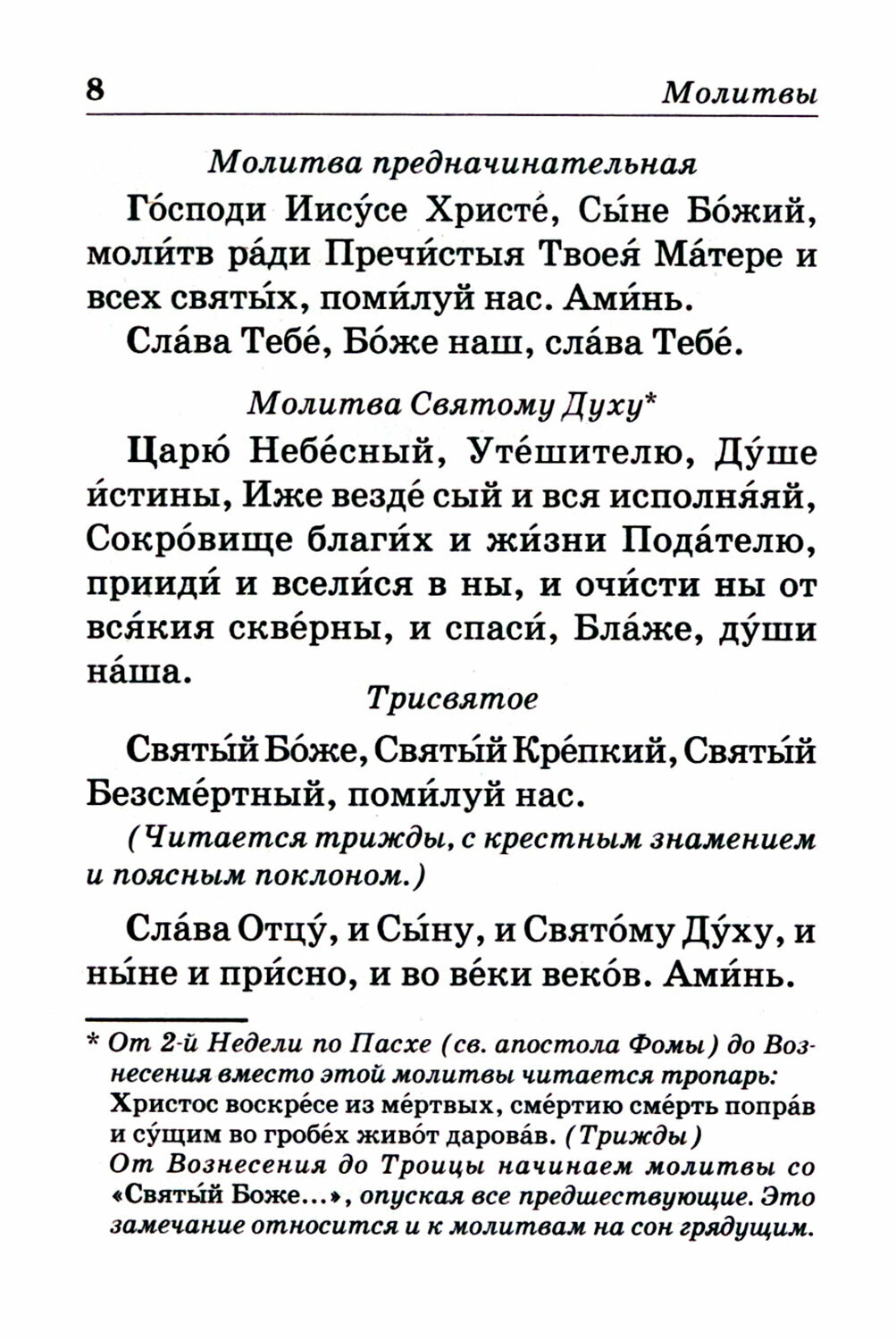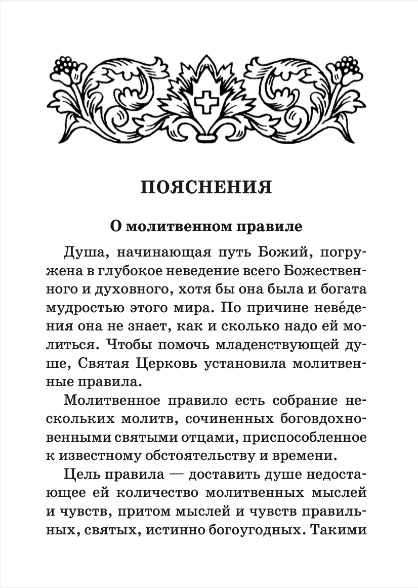 Молитвослов содержит все основные молитвы для православного человека: утренние, на сон грядущим, правило ко Святому Причащению и благодарственные молитвы, тропари и кондаки на праздники, избранные молитвы Пресвятой Богородице, святым и на всякую потребу. Также представлены пояснения по основным вопросам жизни православного христианина — о молитве, исповеди, Причастии и посте; в конце молитвослова содержится словарь малопонятных слов и выражений.