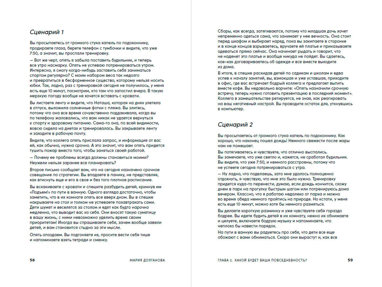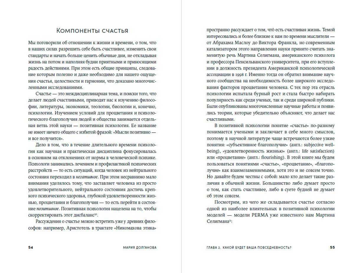 Эта книга о важности обыкновенных дней — обычных будней — для нашего ощущения счастья. Часто мы живем от выходных до выходных, не замечаем, как рутина поглощает нас, и поводов для маленьких радостей совсем не остается. Мария Долганова, автор канала о счастье, член Международной ассоциации позитивной психологии, напоминает нам о простой, казалось бы, истине — счастье заключается в мелочах. Опираясь на выводы науки о счастье — позитивной психологии, автор рассказывает, как научиться ценить повседневность, наполнять ее приятными эмоциями и создавать больше гармоничных и счастливых моментов в своей жизни каждый день.