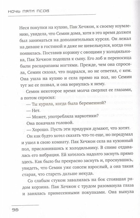 Впервые на русском языке корейский психологический триллер, бестселлер, победитель 7-й премии в области молодежной литературы «Хвансанболь». Роман, который заставляет задуматься о кошмарах, скрывающихся за маской обыденности, и показывает темную сторону общества, где царит вечная ночь пяти псов.