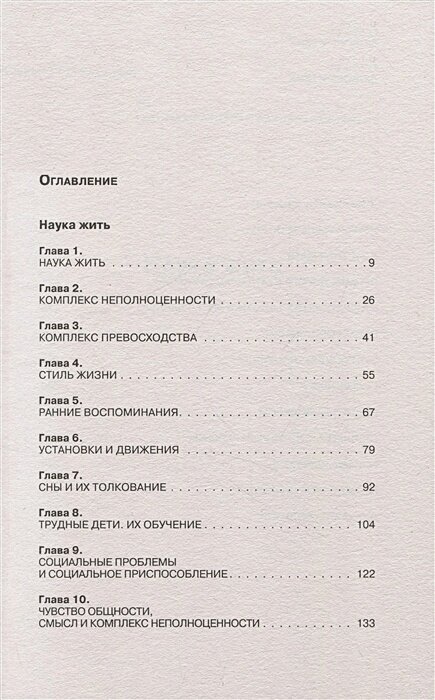 В книге "Наука жить" индивидуальная психология рассматривается как самостоятельная наука, обсуждаются различные ее аспекты и применение в повседневной жизни. Центральные понятия теории Адлера – комплекс неполноценности, компенсация, жизненная цель, стремление к превосходству и стиль жизни – определяются, объясняются и иллюстрируются на конкретных примерах. Особо Адлер подчеркивает важность социального приспособления, позволяющего людям процветать, сосуществовать с другими, ставить полезные цели и в итоге жить осознанно.