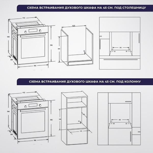| Размеры ниши для встраивания (ВхШхГ) | 58.5х42х56.5 см |