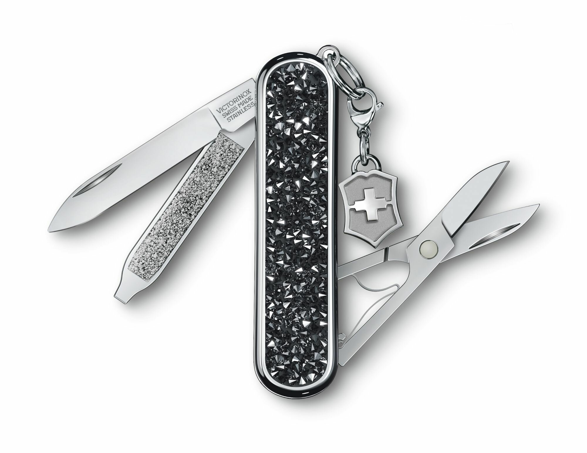 Нож-брелок Victorinox Crystal 0.6221.35 украшен кристаллами высочайшего качества, что придает ему роскошный вид и безупречную функциональность.